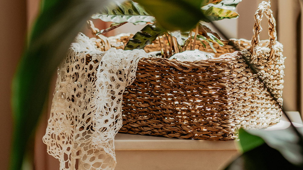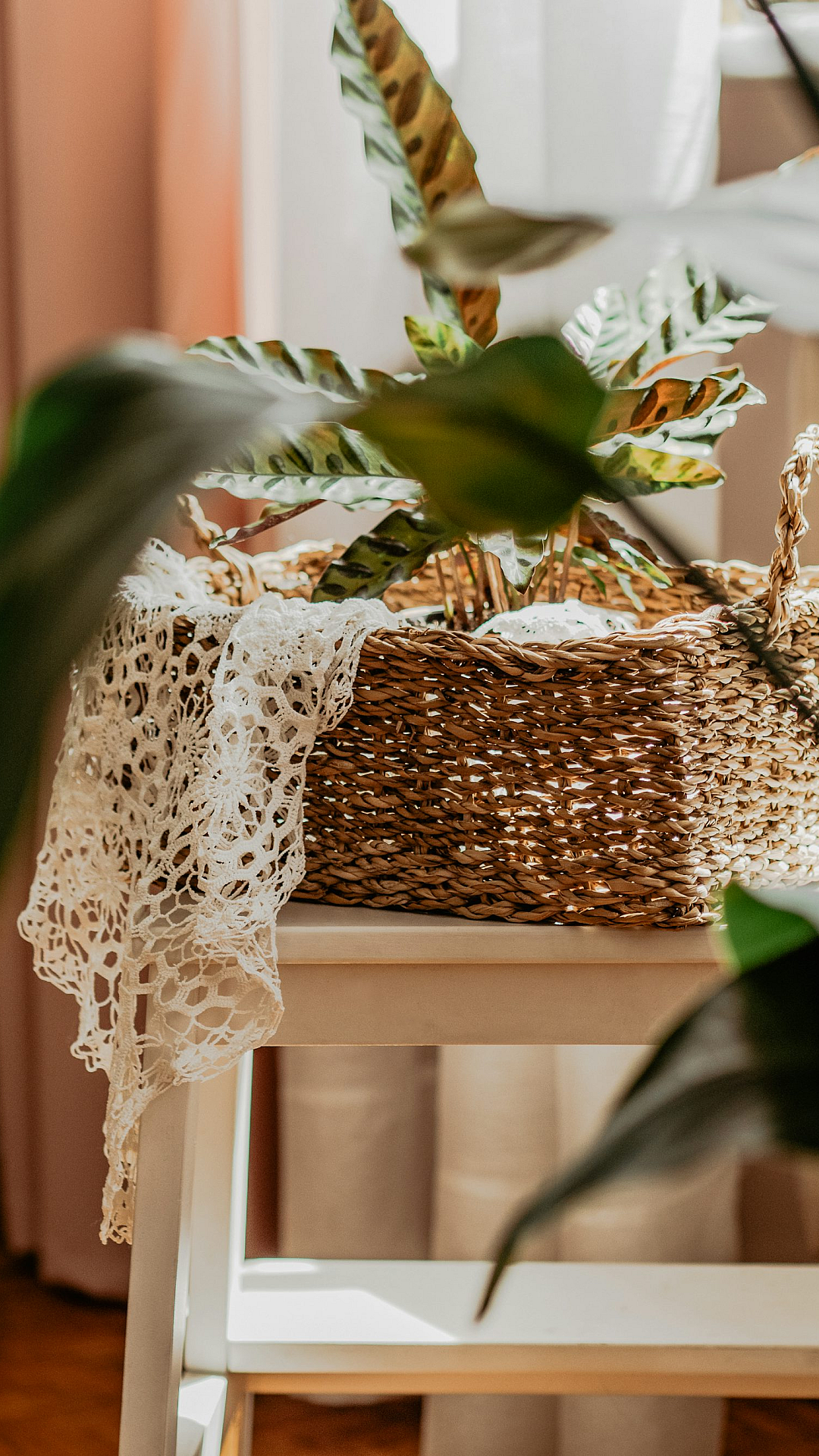 The image is ideal as a wallpaper background for computers, tablets, and smartphones. The high-resolution quality ensures a crisp and clear display, showcasing the intricate details of the basket and the warm glow of the sunlight streaming through the window. The overall aesthetic is both calming and aesthetically pleasing, making it a versatile choice for both personal and professional use.