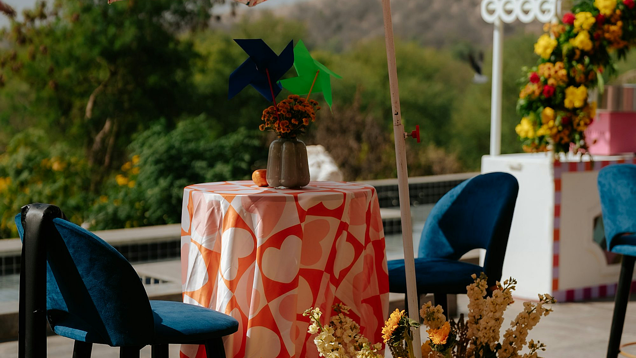 outdoor event, outdoor party, festive decor, colorful decorations, vibrant decor, party decorations, event decorations, celebration, festival, colorful backdrop, bright colors, outdoor setting, summer party, garden party, festive atmosphere