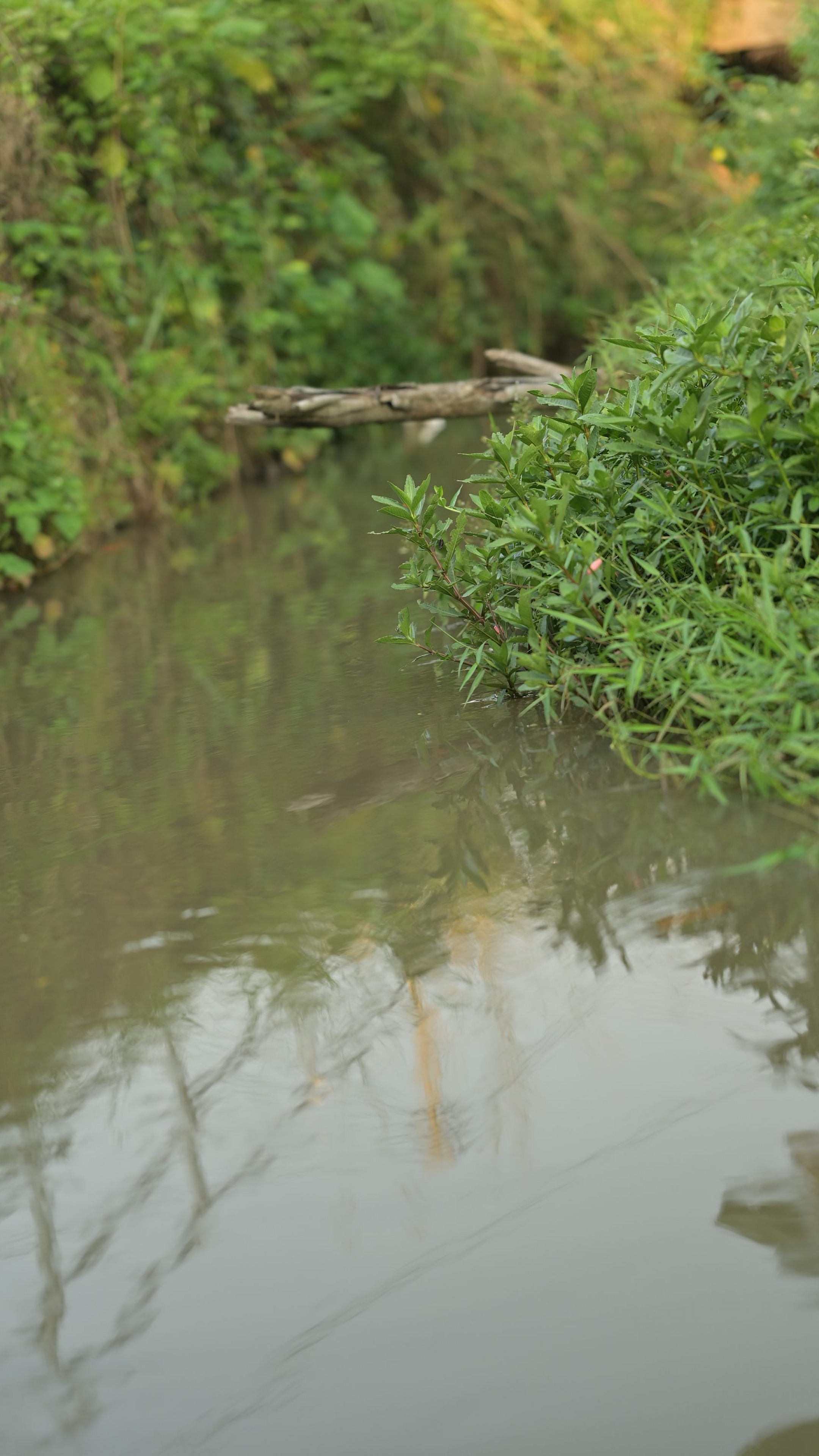 a bird is standing on a branch in the water