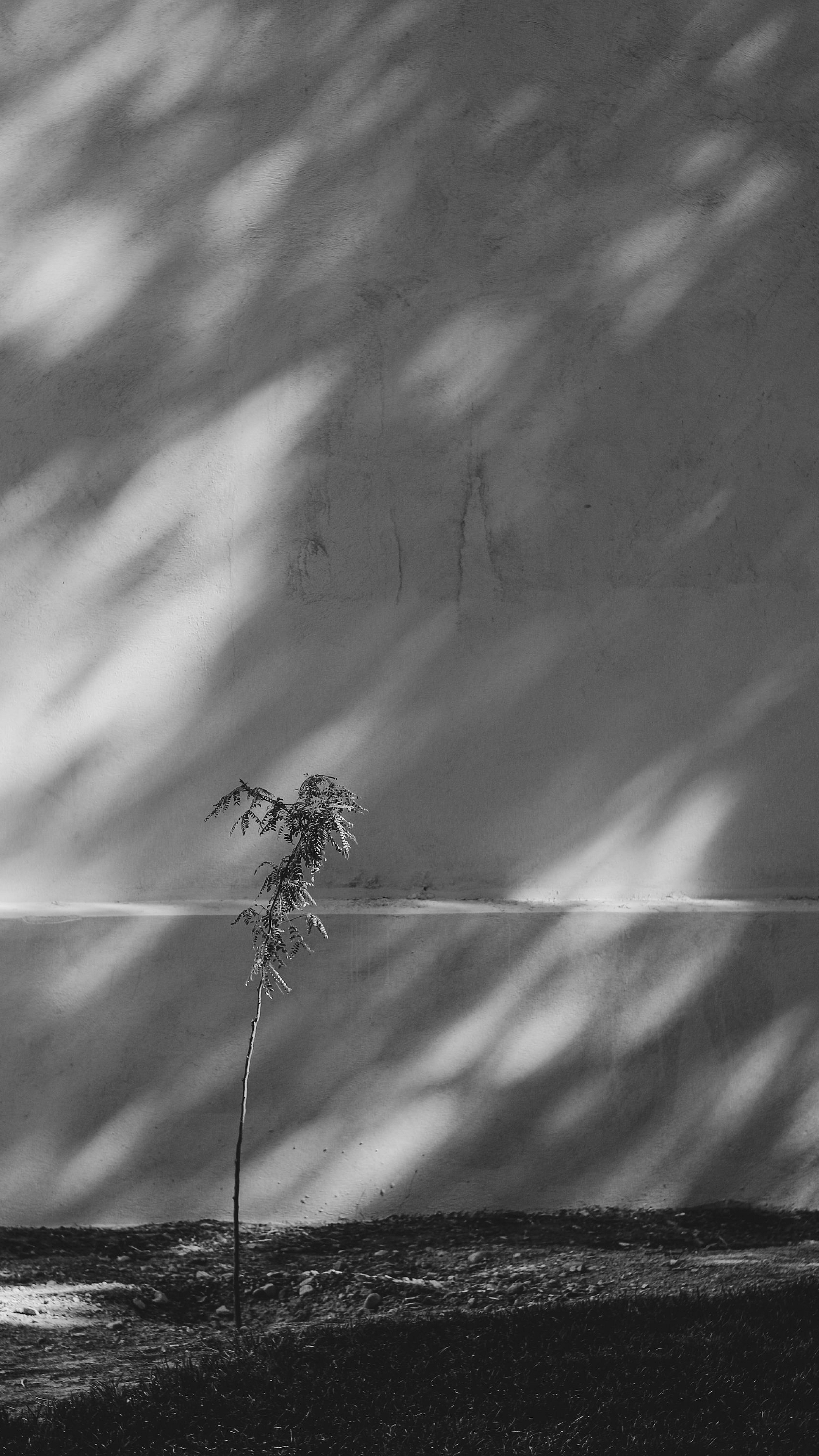 black and white, monochrome, tree, wall, nature, architecture, minimalist, simple, stark, texture, contrast, shadow, photography, image, background