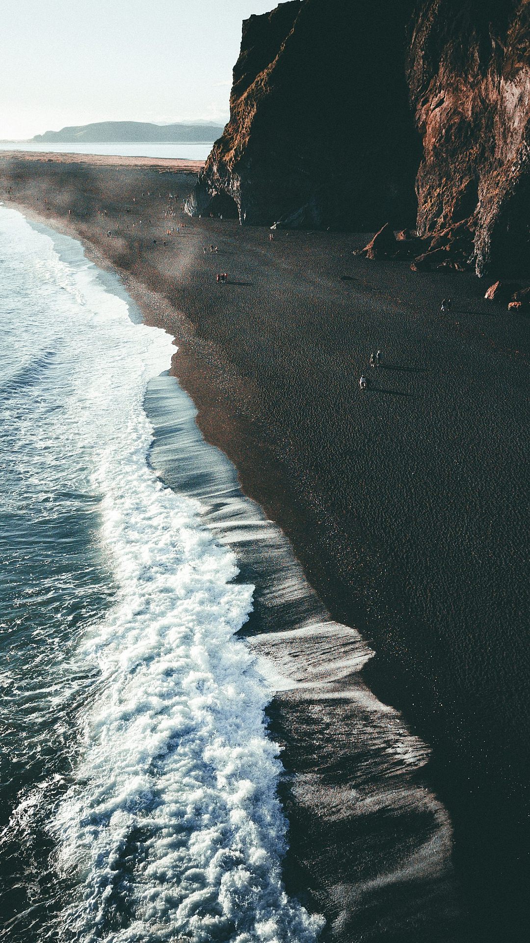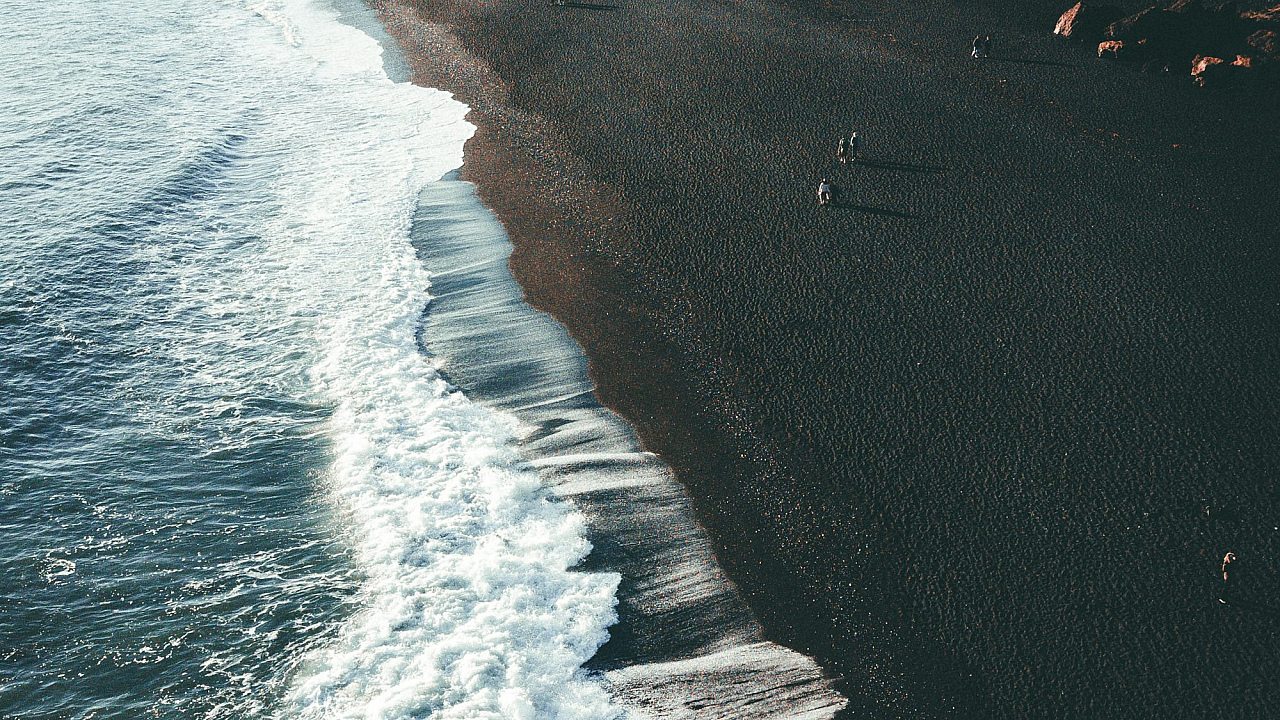 Wallpaper A Black Beach with Waves