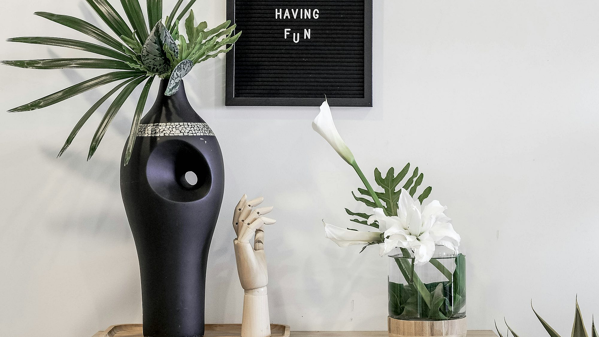 Wallpaper A Black Vase on a White Dresser