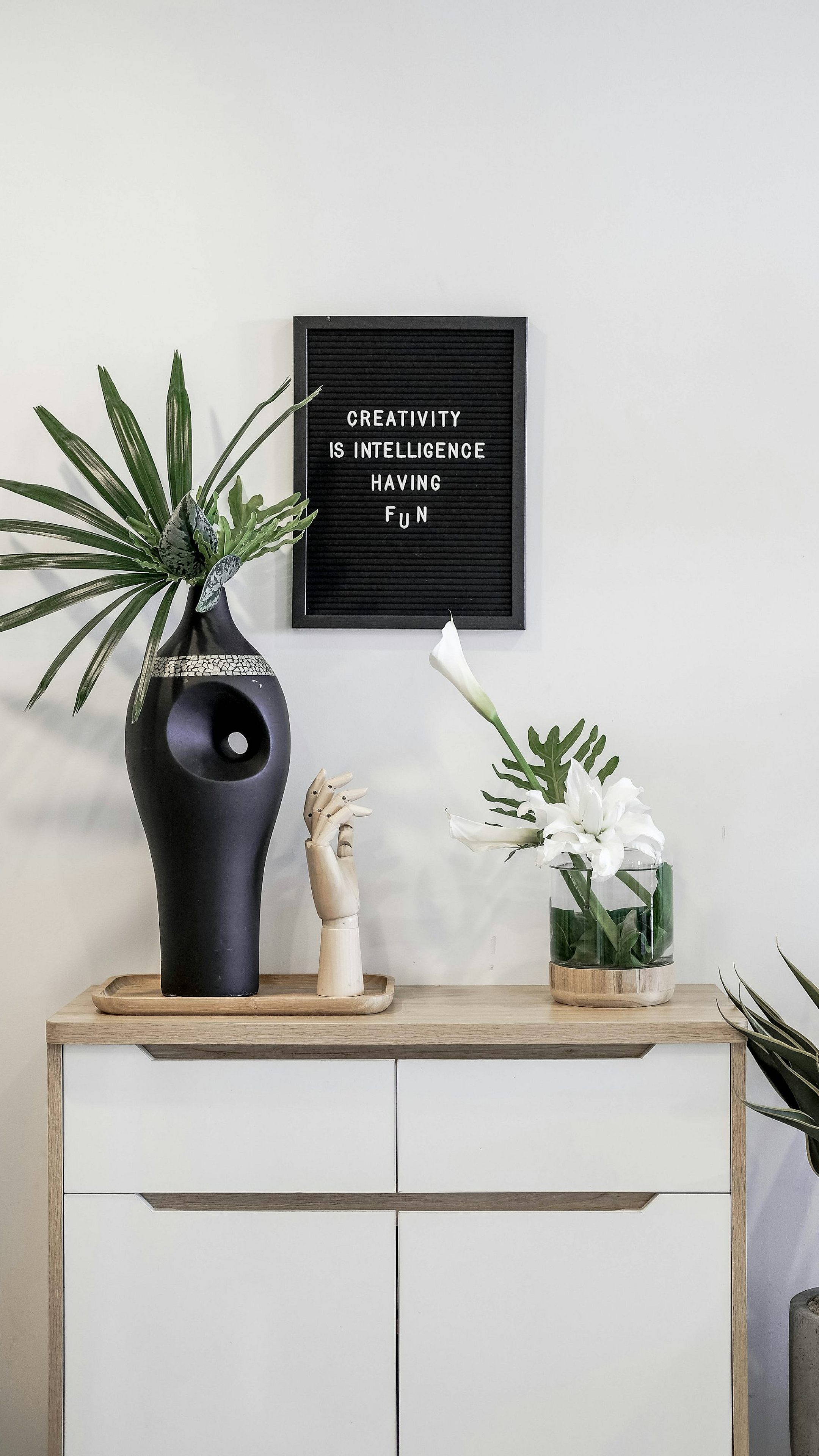 black vase, white dresser, minimalist wallpaper, simple wallpaper, monochrome wallpaper, dark wallpaper, light wallpaper, contrast wallpaper, still life wallpaper, home decor wallpaper, interior design wallpaper, elegant wallpaper, sophisticated wallpaper, modern wallpaper, vase wallpaper