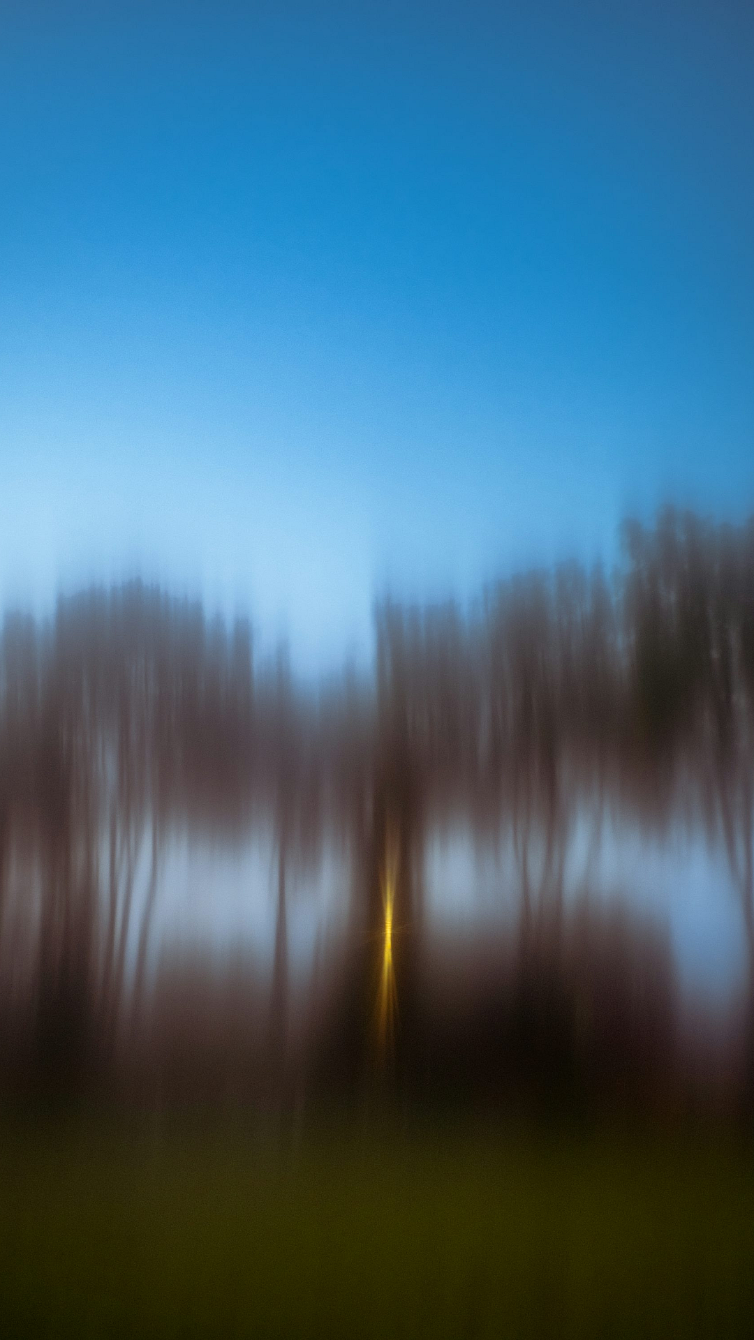 This wallpaper features a blurry image, lending a dreamy and atmospheric quality. The focus is intentionally soft, creating a hazy effect that emphasizes the mood rather than sharp detail. The central element is a streetlight, its glow diffused and indistinct, casting a warm light on the surrounding trees.