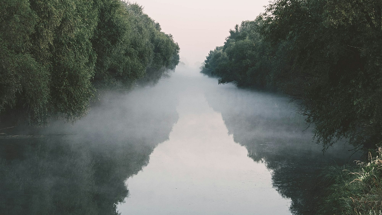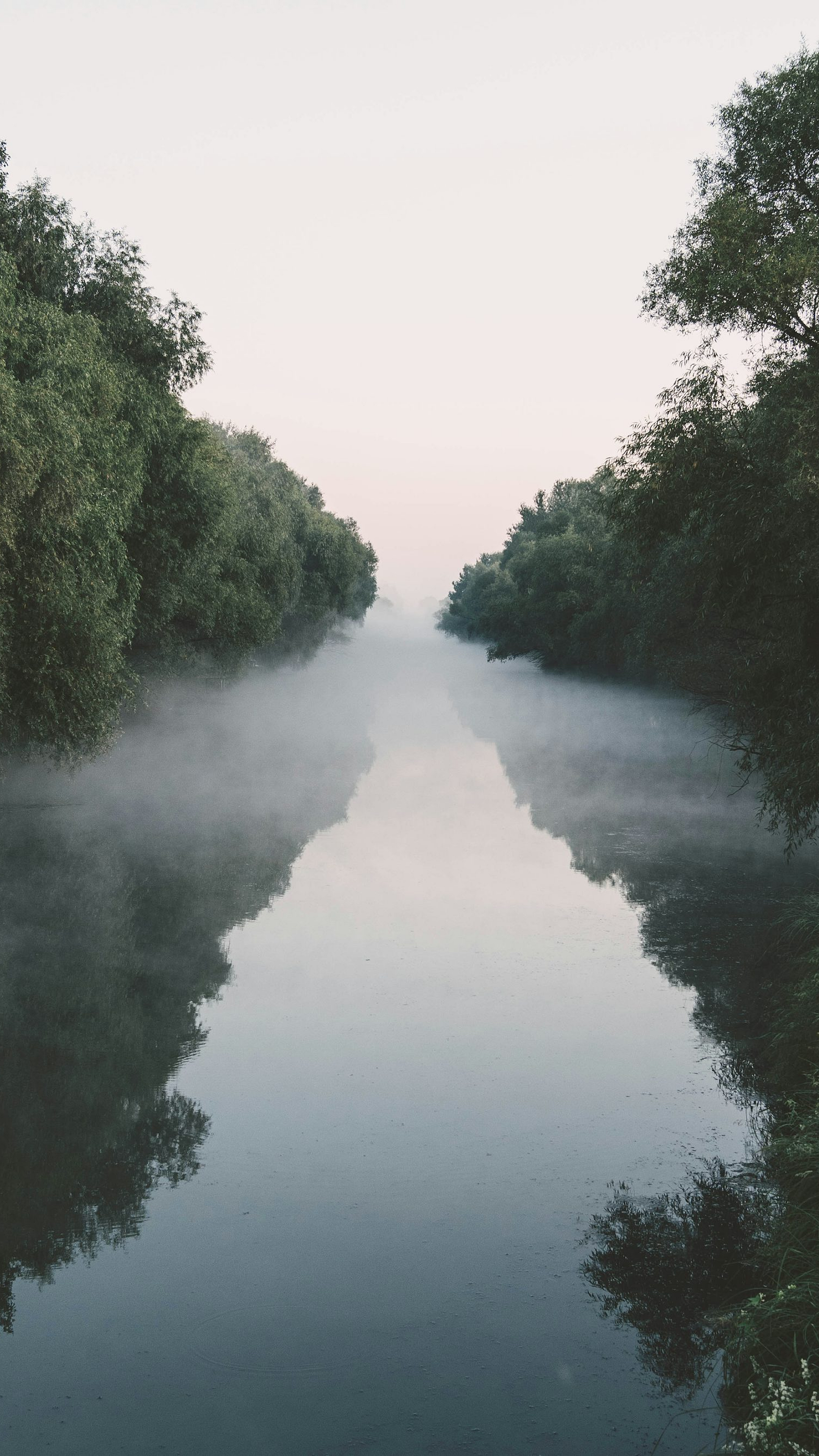 This stunning wallpaper features a body of water, likely a lake, completely enveloped by lush trees and a thick layer of fog or mist. The ethereal atmosphere created by the fog hanging low over the water and the trees gives the image a sense of serenity and peace. The scene is perfect for those who appreciate nature‘s beauty and the tranquil feeling it can evoke.