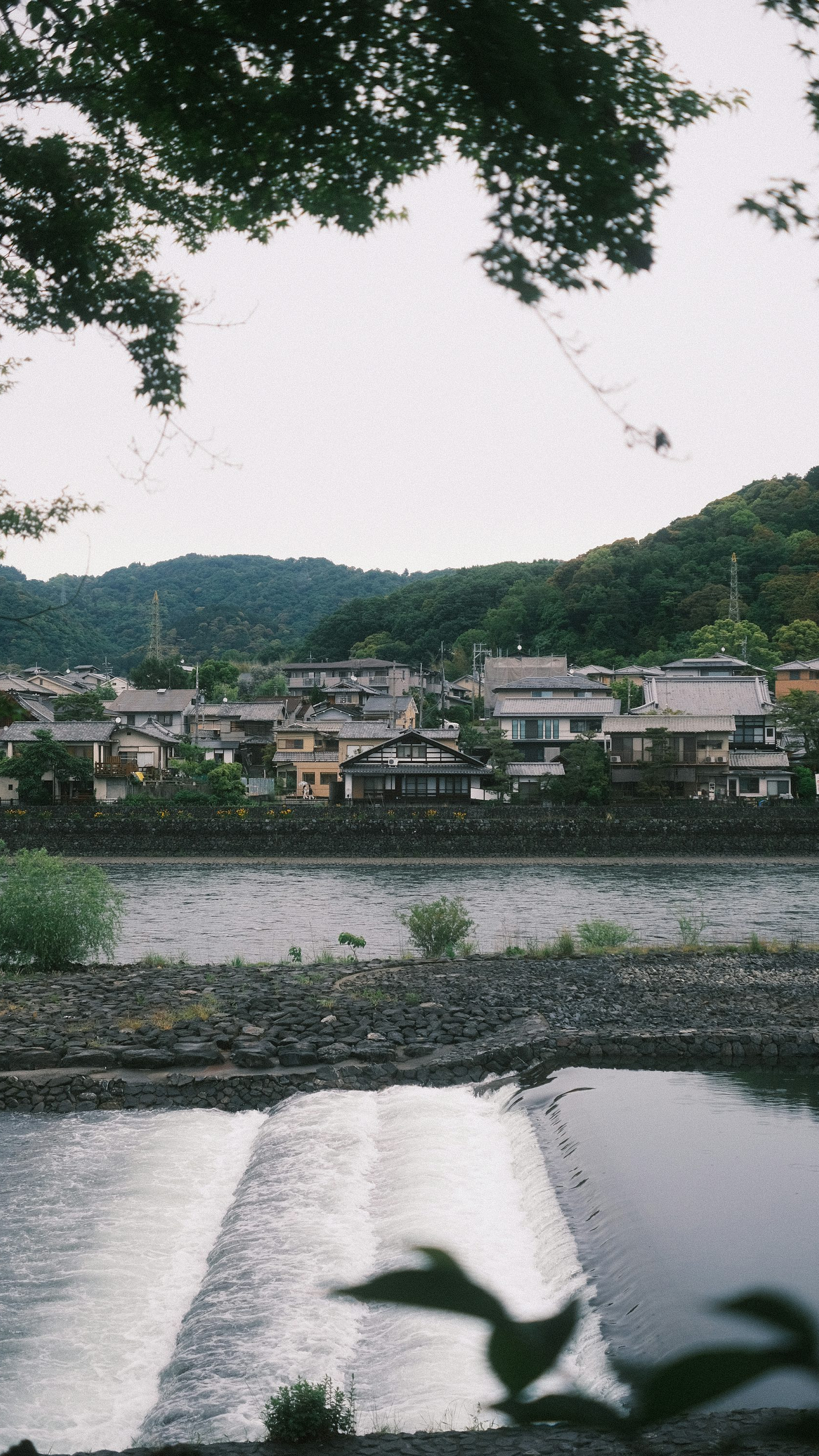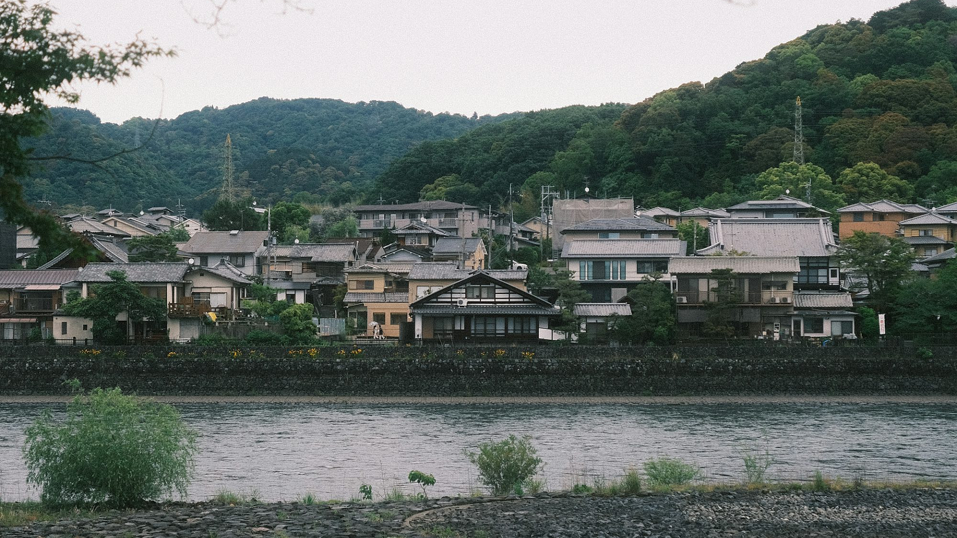 The image captures the tranquility of the water, whether it be a still lake, a flowing river, the vast expanse of the ocean, or a serene sea. The picturesque houses and buildings add a touch of residential charm to this beautiful view of nature. The image is ideal for those seeking a relaxing and aesthetically pleasing wallpaper.