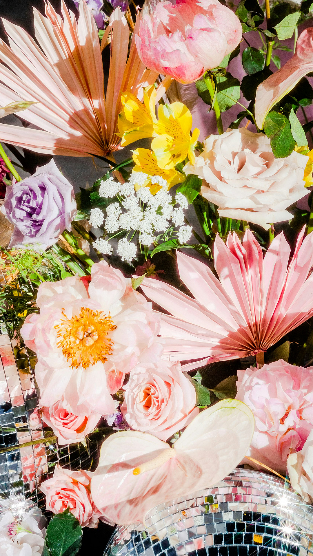 The petals of each flower are exquisitely detailed, highlighting the intricate beauty of nature. The careful arrangement and choice of flowers create a visually stunning piece. This wallpaper evokes feelings of spring and summer, bringing a touch of warmth and vibrancy to your device’s screen. The overall effect is a calming and uplifting image, perfect for a peaceful atmosphere.