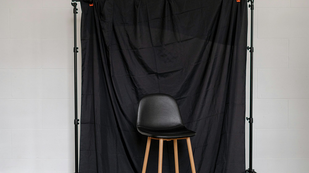 chair, black background, dark background, minimalist, simple, modern, single chair, furniture, seat, silhouette, shadow, monochrome, studio shot, interior design, abstract