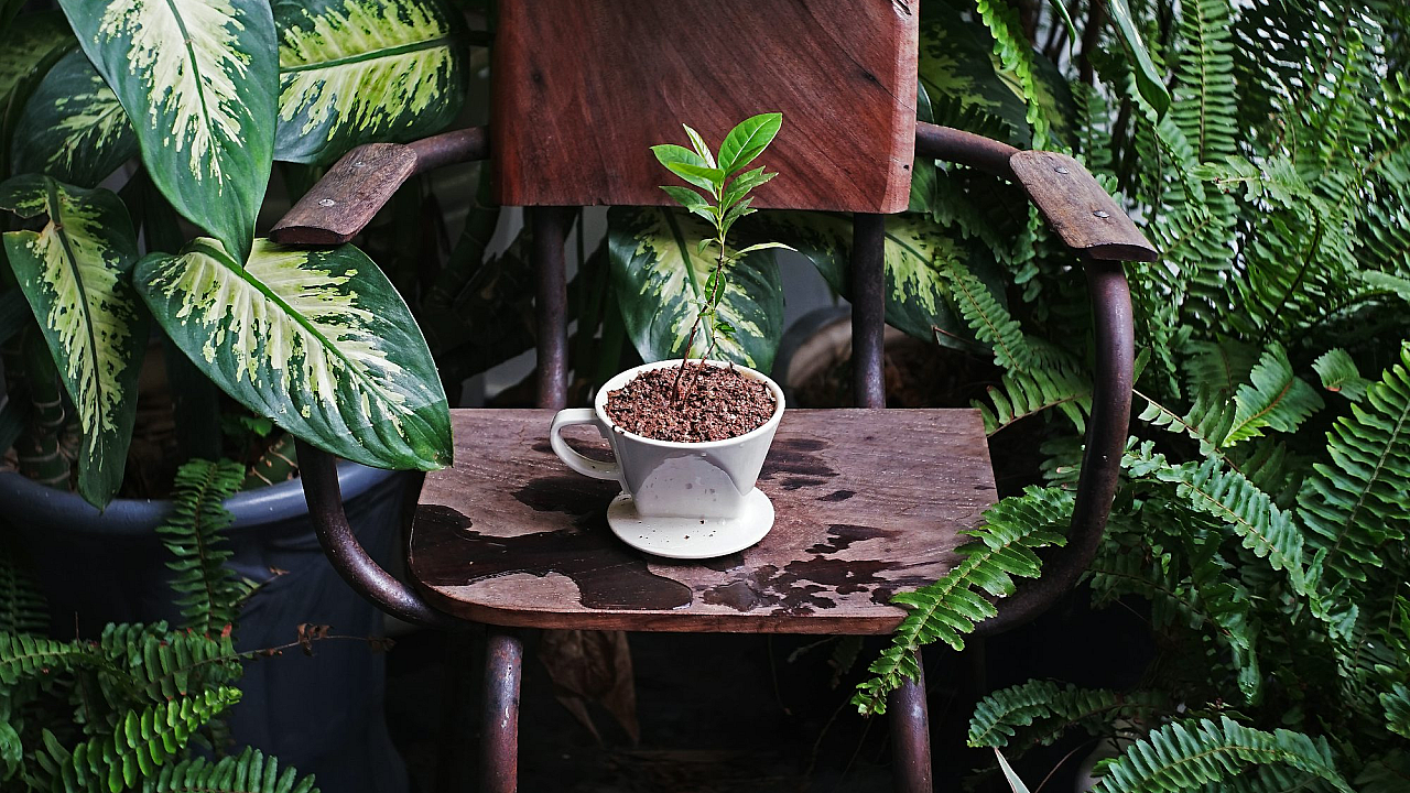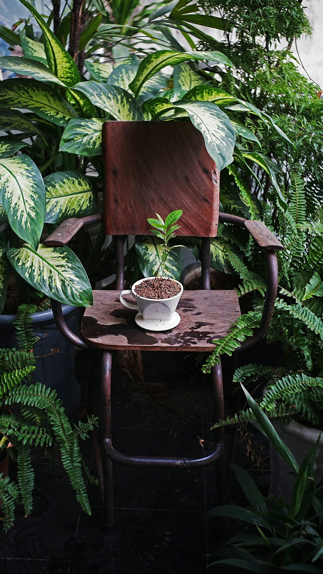 chair, plant, potted plant, indoor plant, houseplant, pot, flower pot, green plant, foliage, chair wallpaper, home decor, interior design, minimalist, simple, cozy