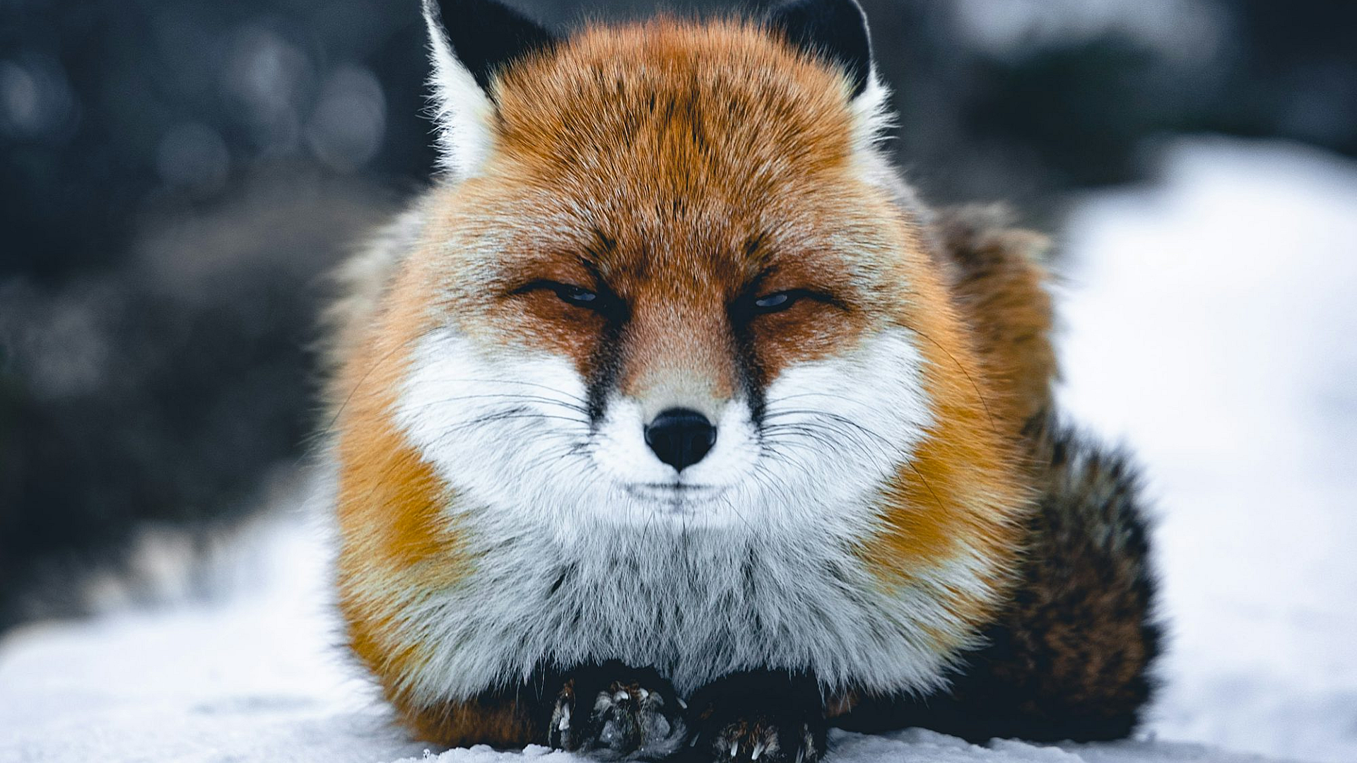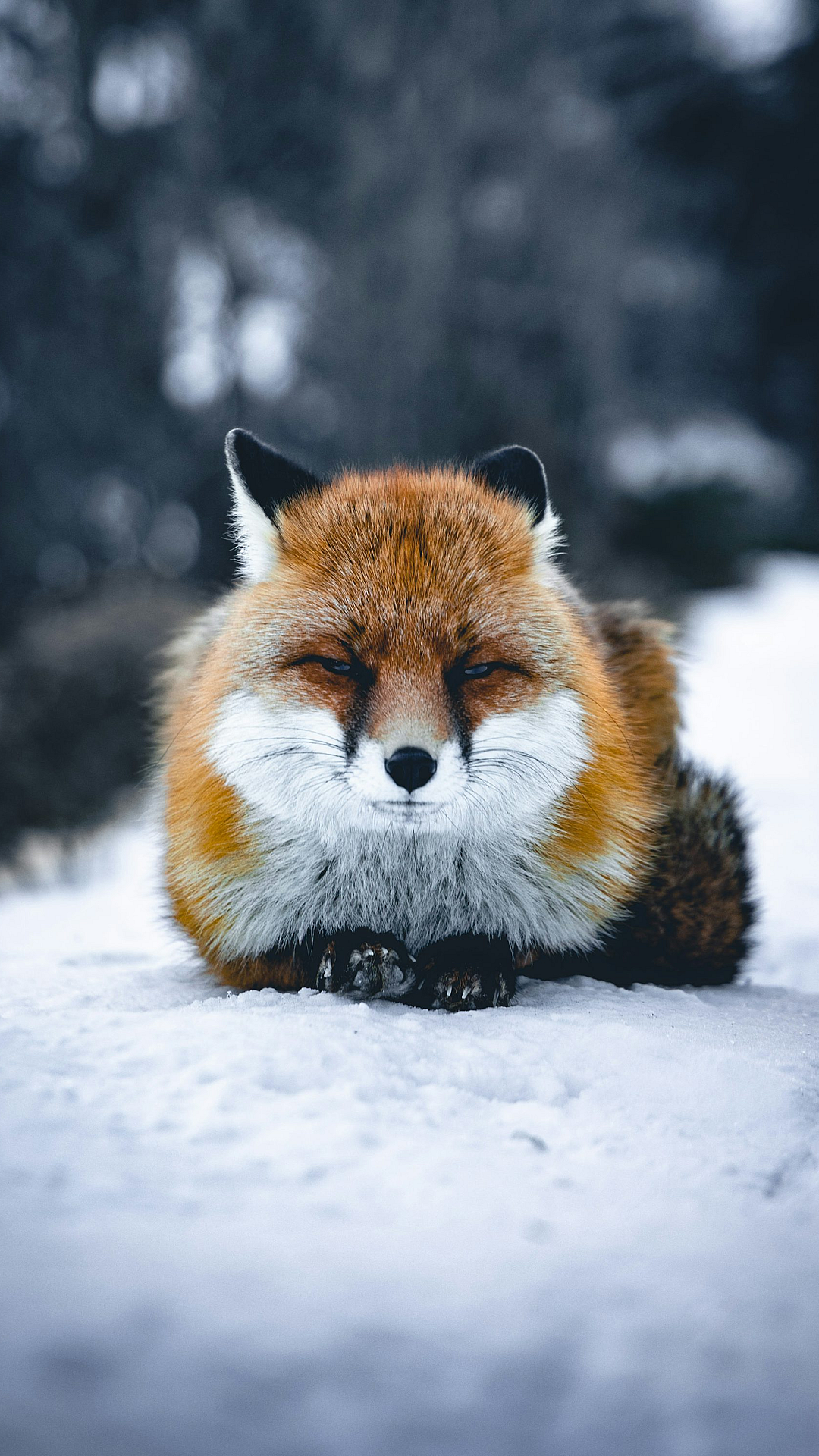 Wallpaper A Close Up of a Fox Laying in the Snow