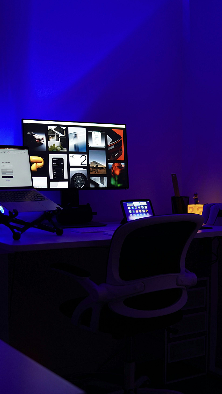 Wallpaper A Computer Desk with Two Monitors and a Laptop