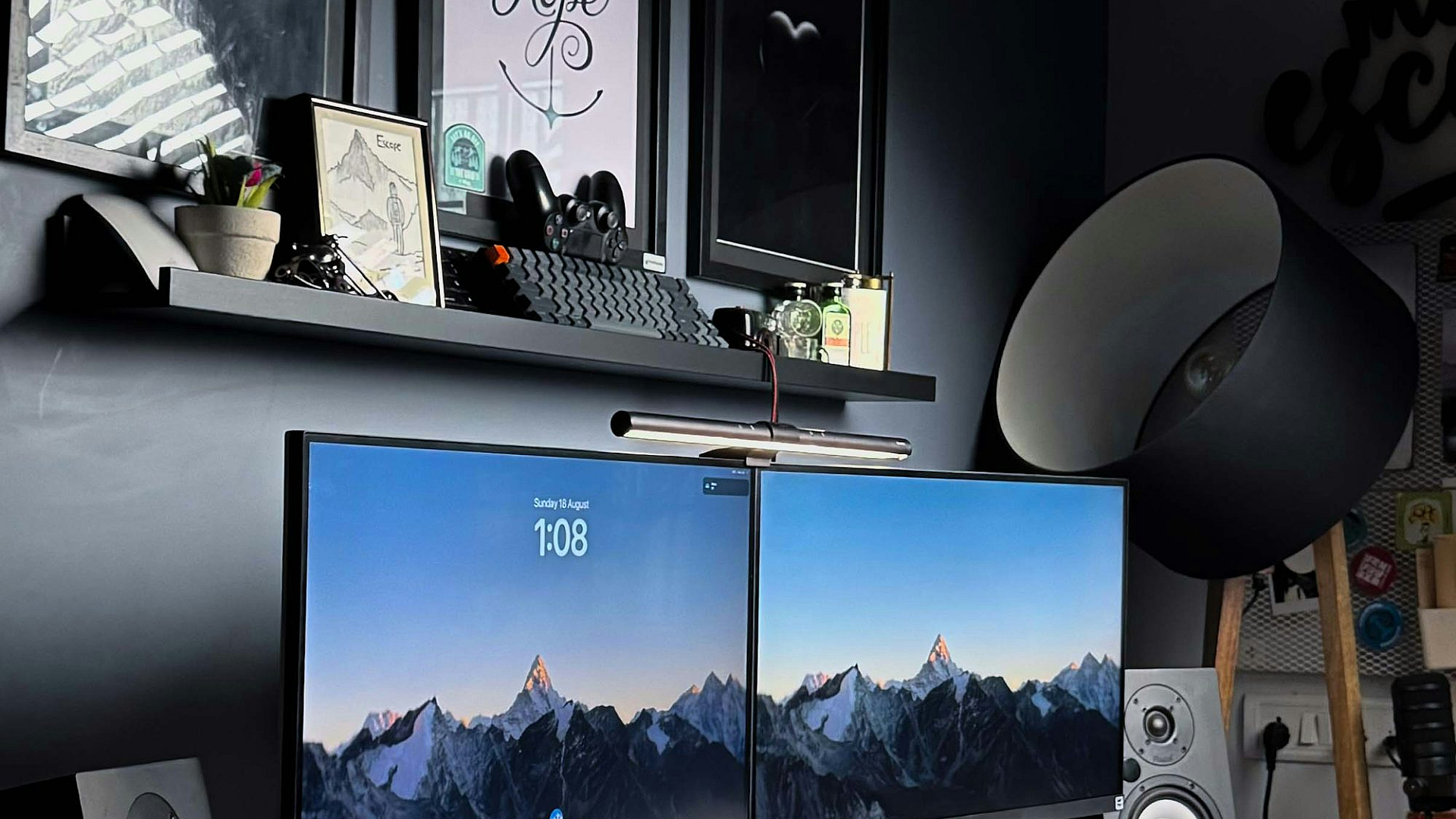 computer desk, dual monitor setup, two monitors, speakers, workspace, home office, gaming setup, technology, desk setup, computer background, desktop wallpaper, digital wallpaper, office background, workstation, screen setup