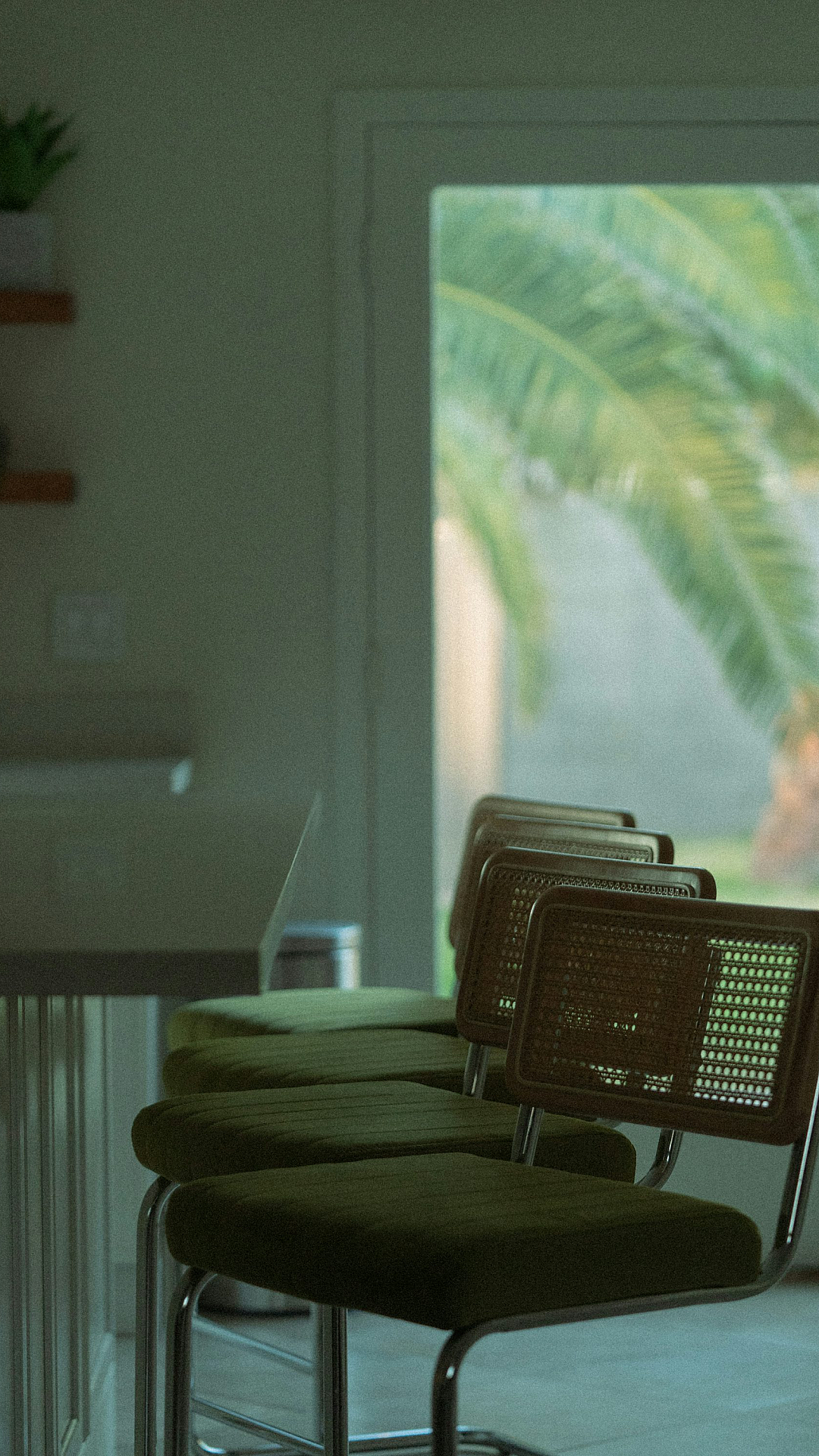 This wallpaper features a captivating image of a couple of chairs situated within a room. The scene is presented in a style that evokes a sense of calm and tranquility. The focus is clearly on the chairs themselves, their design, and how they interact with the surrounding environment. The color palette is likely muted and understated, contributing to the overall serene atmosphere.