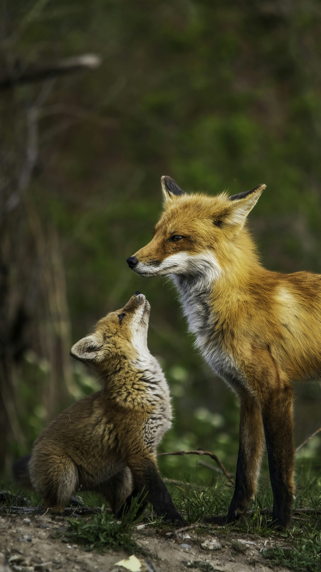 foxes, couple, pair, grass, field, meadow, wildlife, animals, nature, landscape, scenery, rural, countryside, standing, mammals