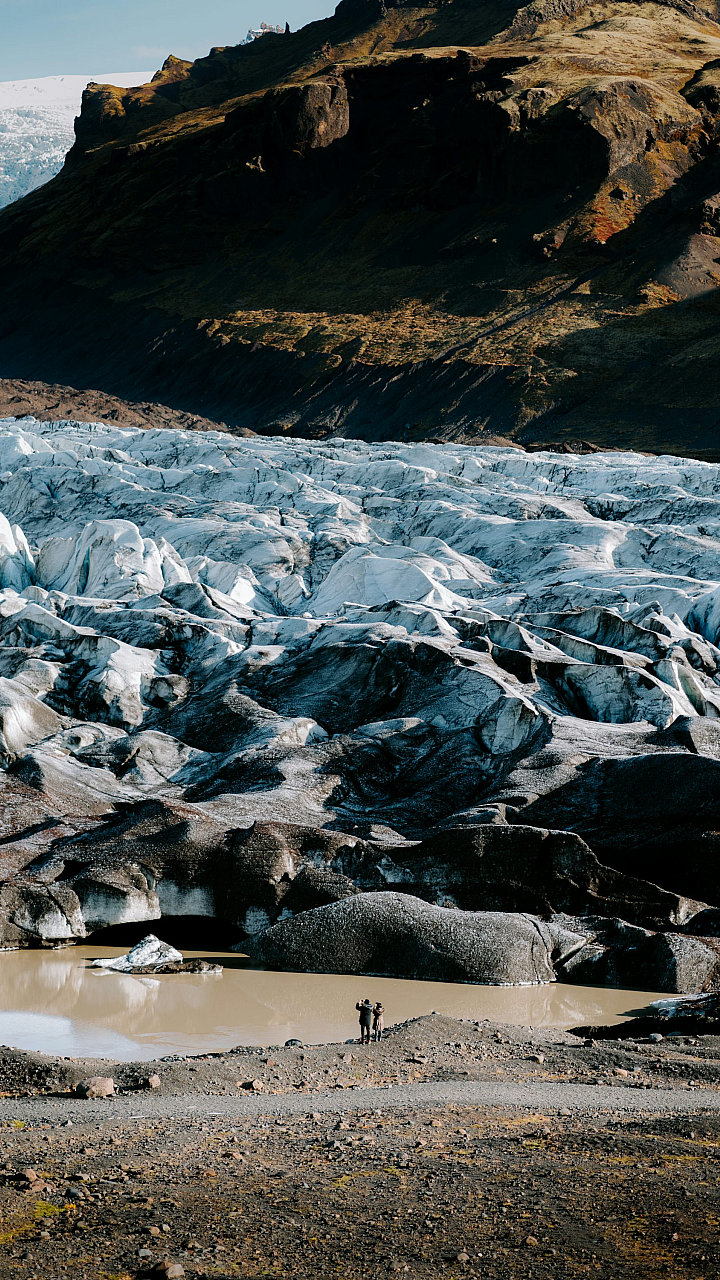 glacier, couple, pair, duo, partners, ice, snow, mountains, landscape, scenery, winter, cold, adventure, travel, outdoors, people, humans, figures