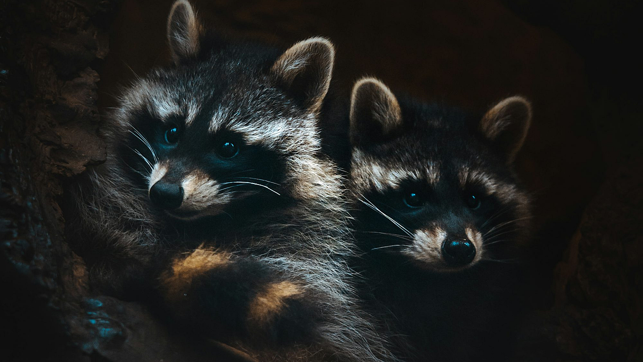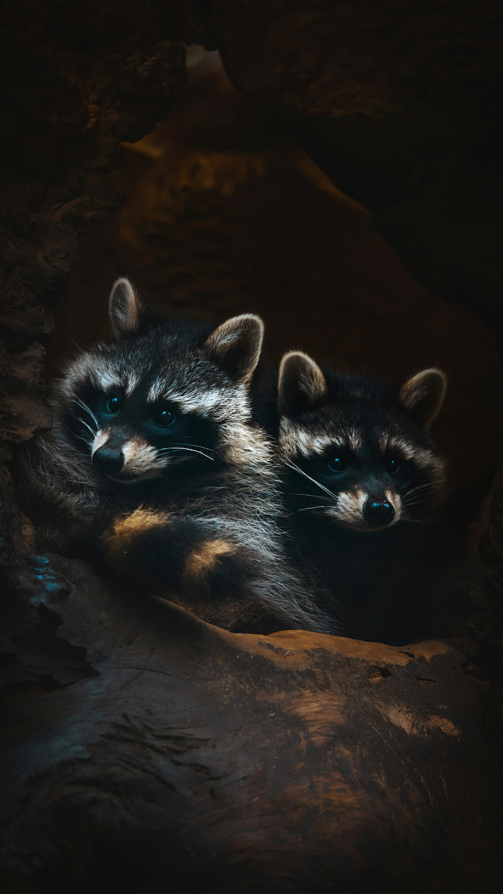 Wallpaper A Couple of Raccoons Sitting on a Rock