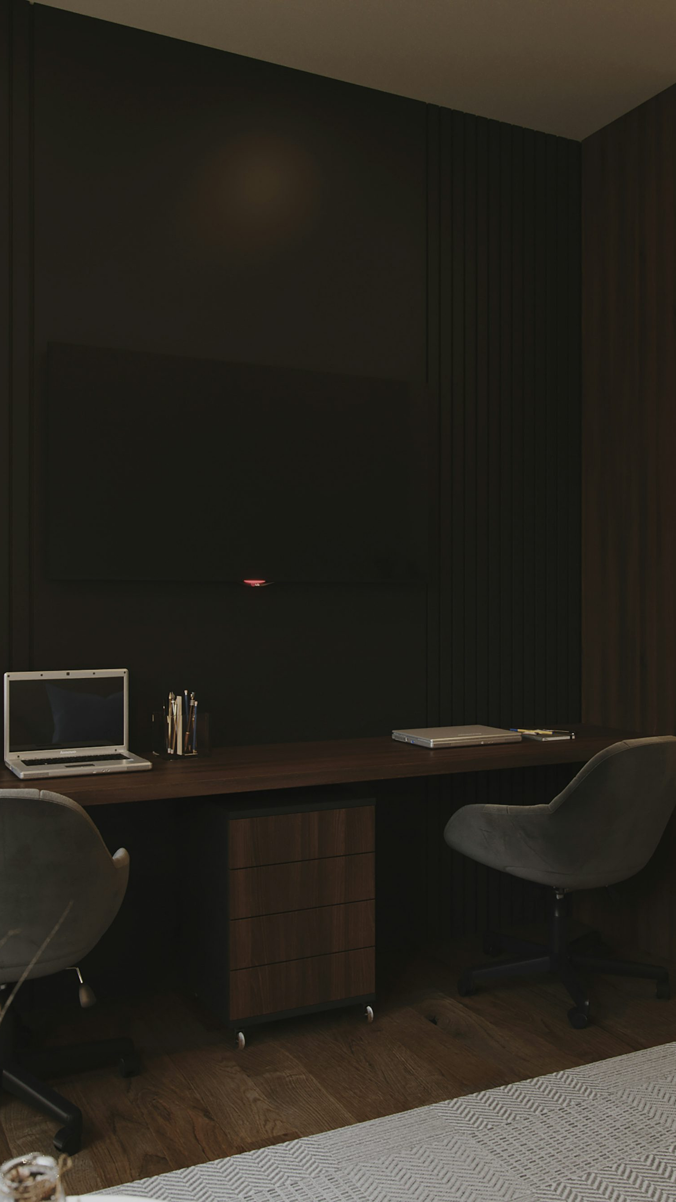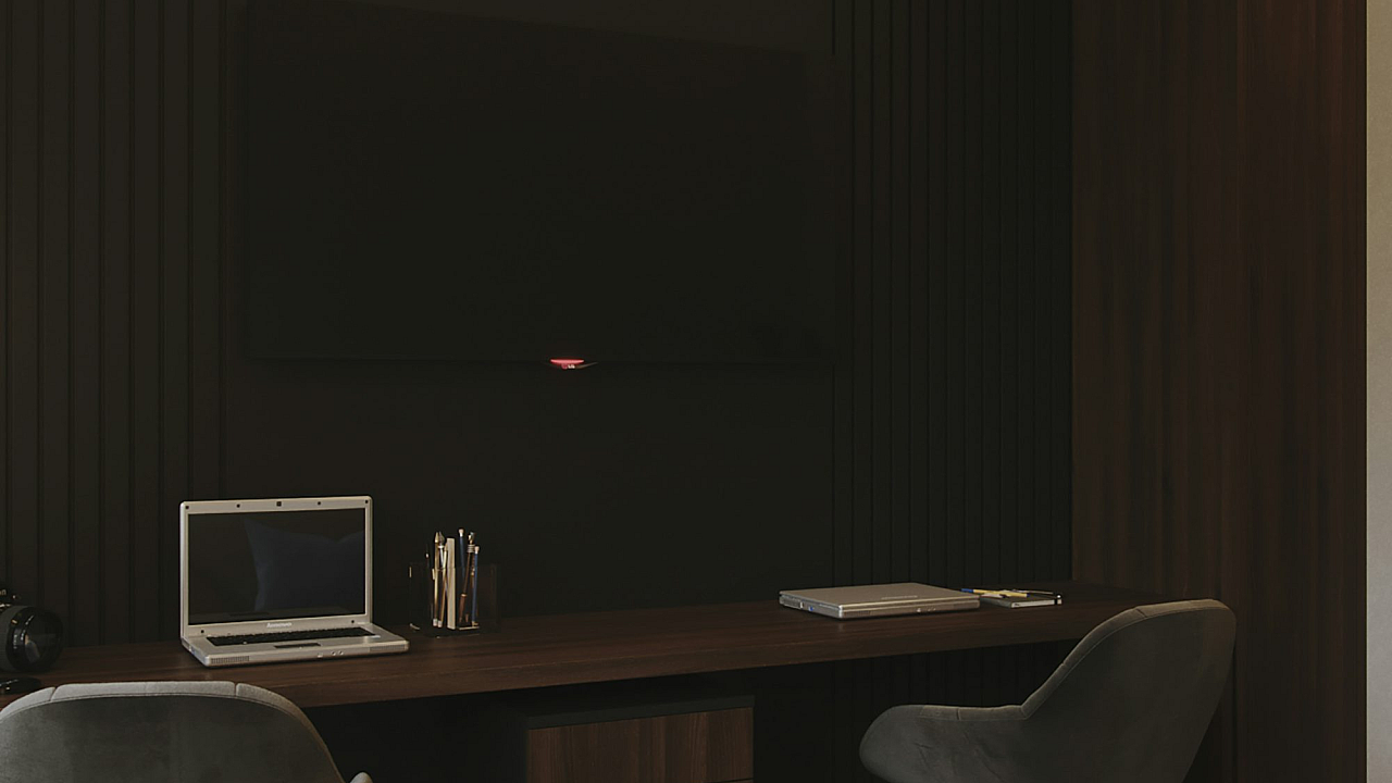 desk, chair, television, wallpaper, background, interior, home office, workspace, study, room, furniture, screen, electronic, setting, simple