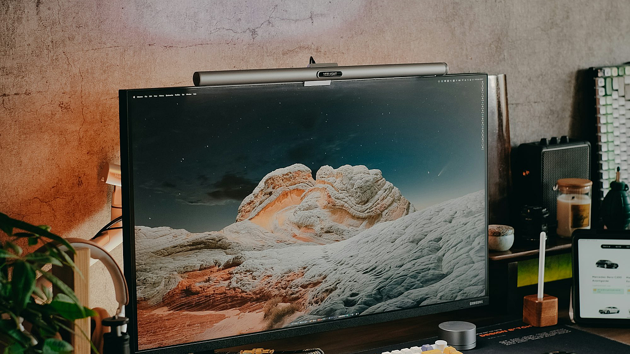 This wallpaper features a clean and modern image of a desk with a computer monitor, keyboard, and mouse. It’s perfect for those seeking a simple yet professional background for their digital devices.