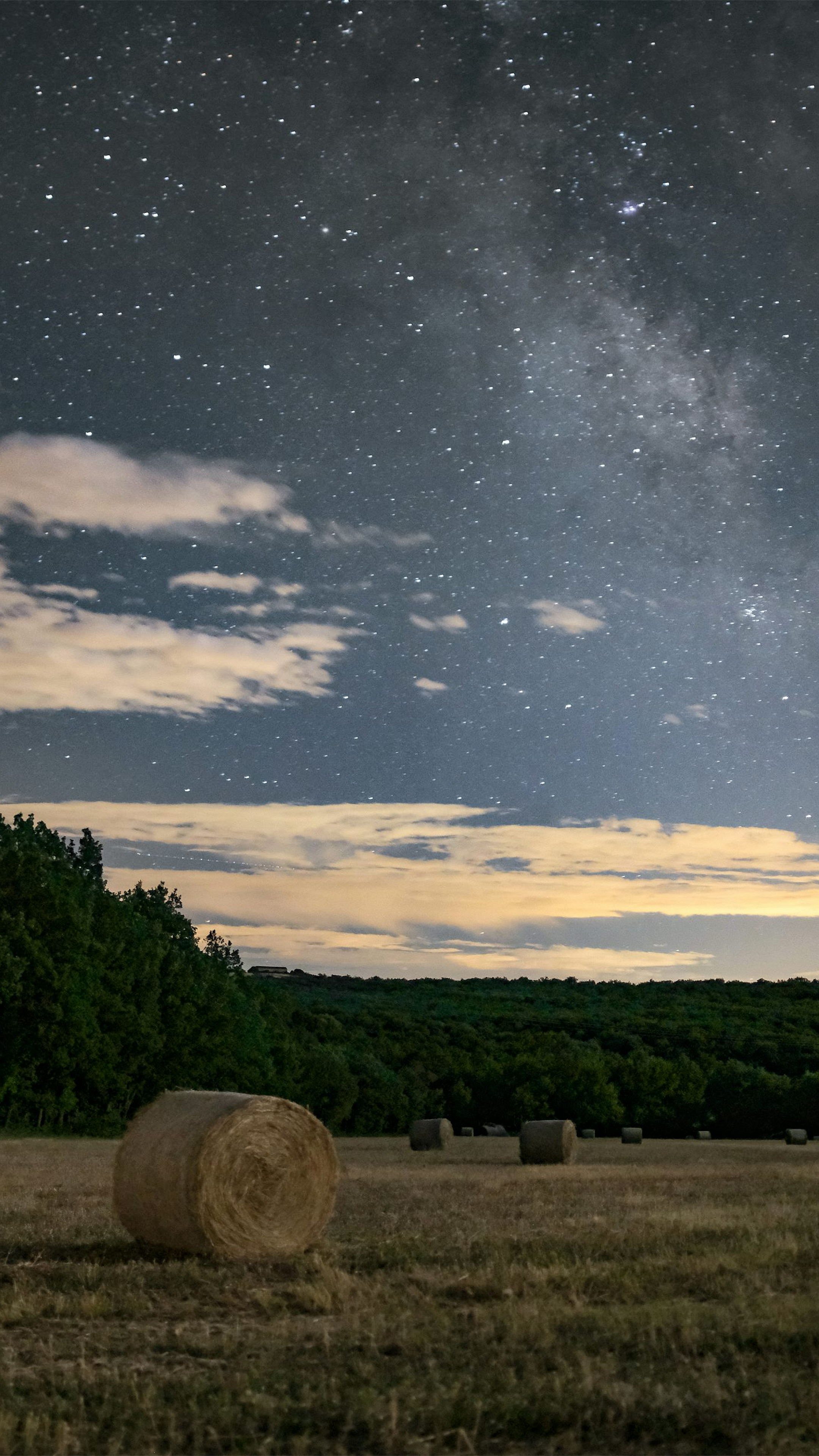 hay bales, night sky, stars, field, farm, rural, countryside, landscape, night, darkness, moonlight, starscape, agricultural, rustic, scenic