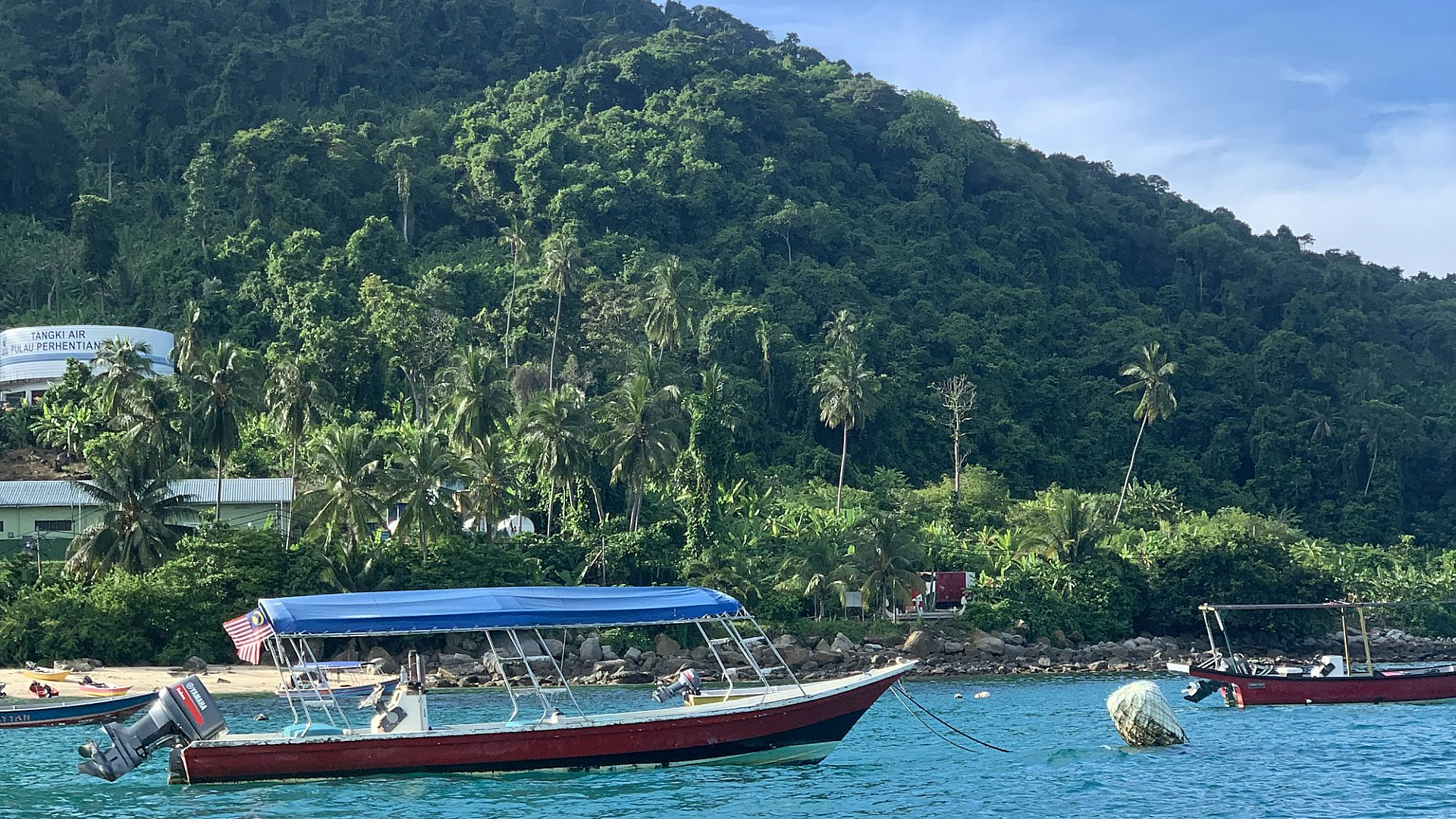 a group of boats floating on top of a body of water