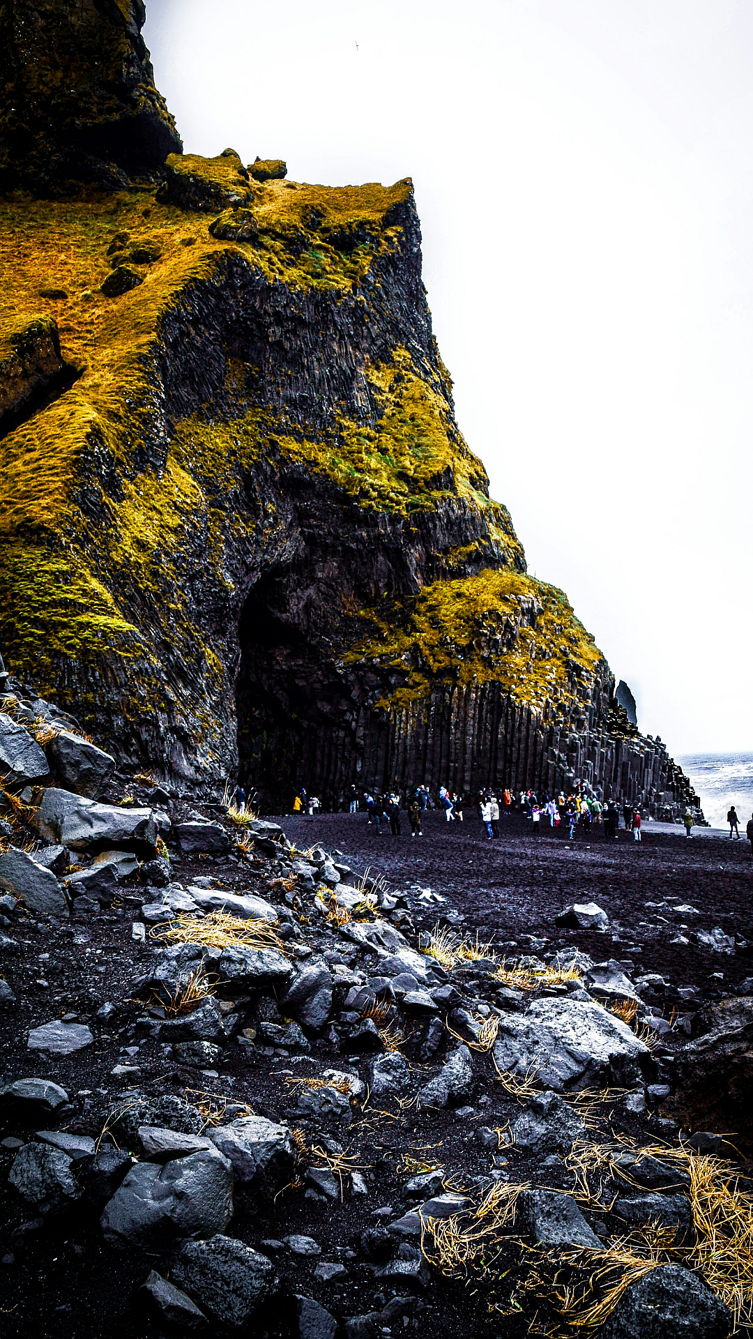 Keywords: rocky beach, group of people, people on beach, beach scene, coastal scene, ocean view, seaside, rocky shore, cliffside, group portrait, outdoor photography, landscape photography, people standing, beach background, ocean background