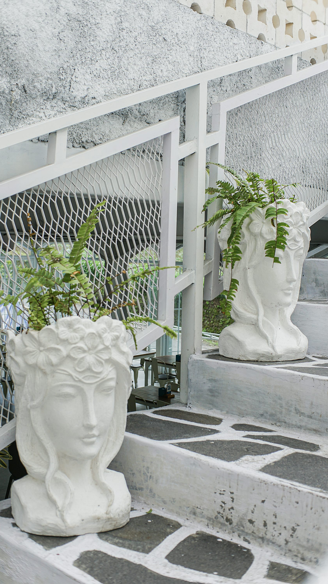 Keywords: white vases, stairs, group, collection, porcelain vases, ceramic vases, white decor, home decor, interior design, minimalist decor, staircase, steps, arrangement, still life, white objects