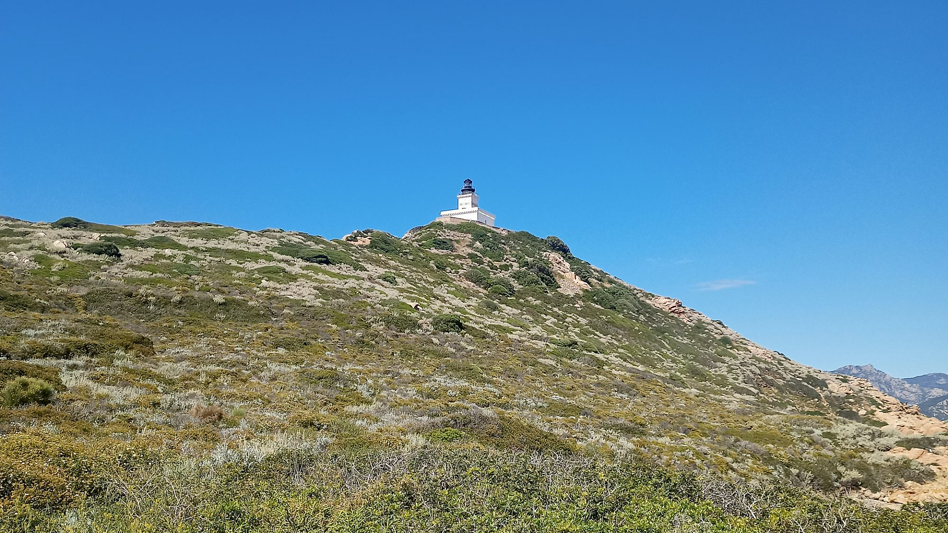 Keywords: hilltop lighthouse, lighthouse, hill, white lighthouse, landscape, scenery, nature, seascape, coastal, ocean, cliff, summit, beacon, light, architecture, synonyms: seaside, coastal scene, promontory, peak, elevation, structure, signal, illumination