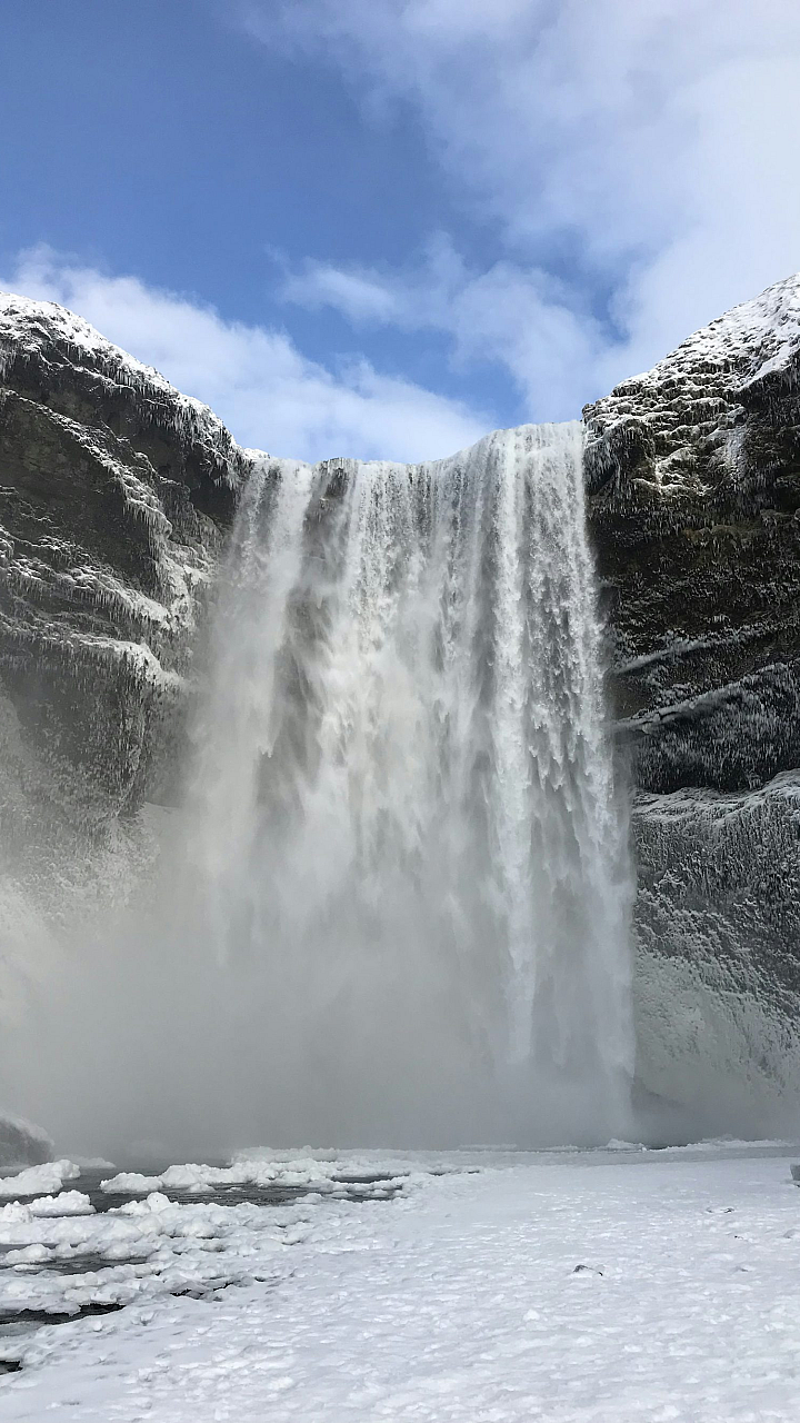 waterfall, snow, winter, landscape, nature, scenic, cold, frozen, water, cascade, mountains, ice, winter wonderland, high resolution, background