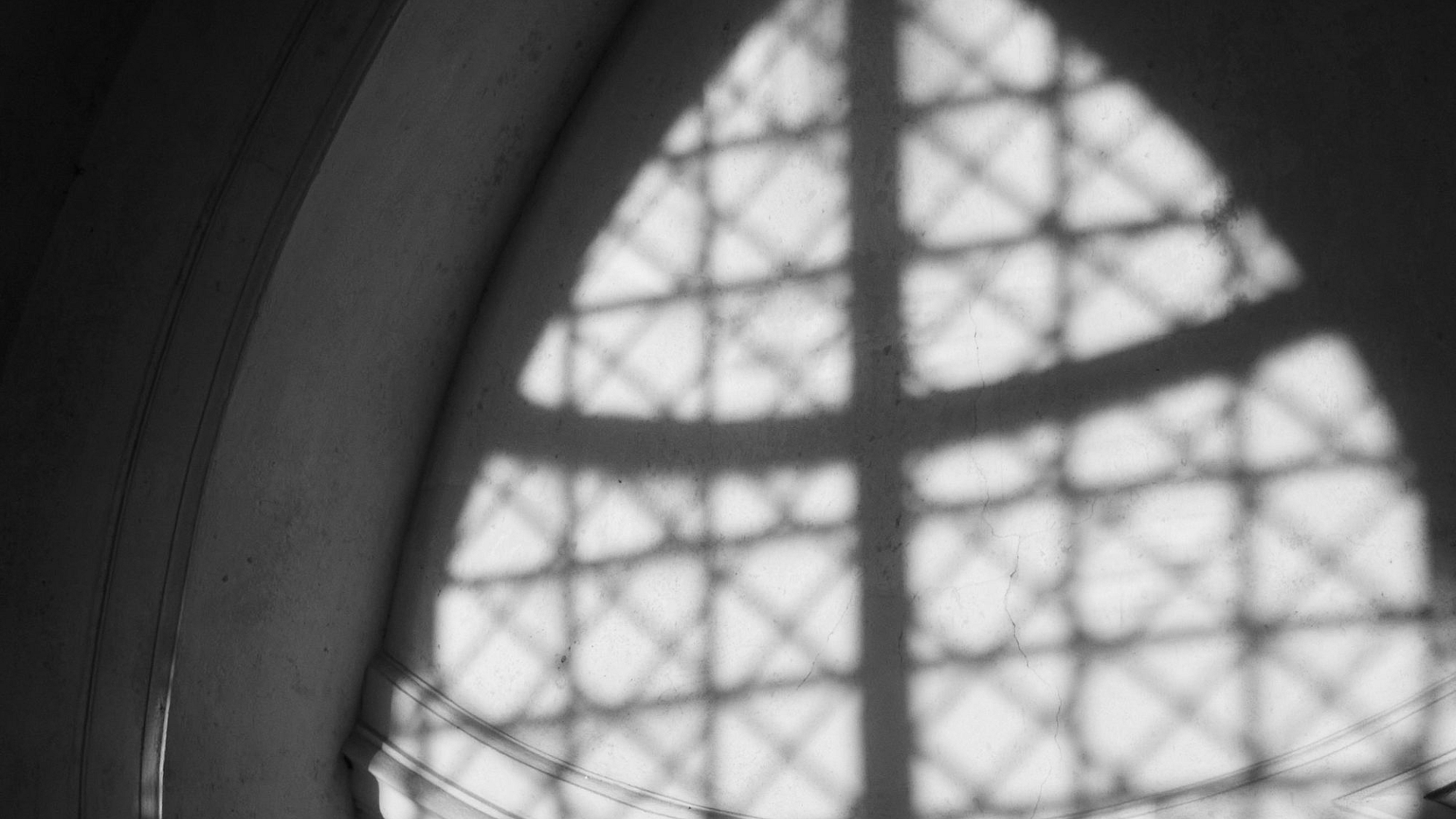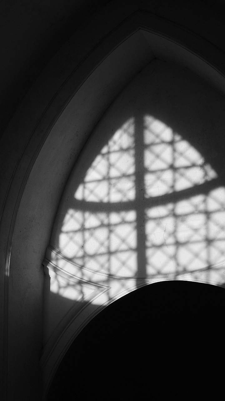 large window, cross, window frame, religious symbol, christian symbol, stained glass, gothic architecture, church window, pane, glass panes, light, shadow, architecture, religious, spiritual