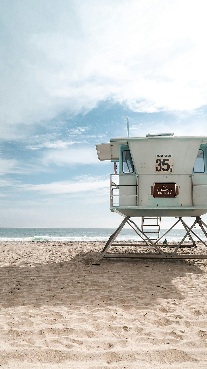 lifeguard tower, beach, sky, ocean, sea, coast, shore, sand, water, summer, vacation, holiday, sun, clouds, seascape