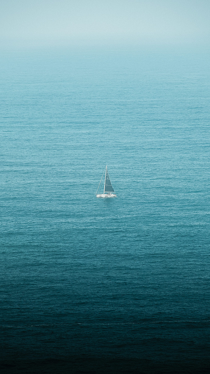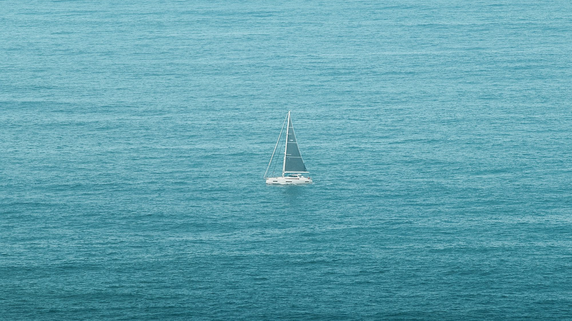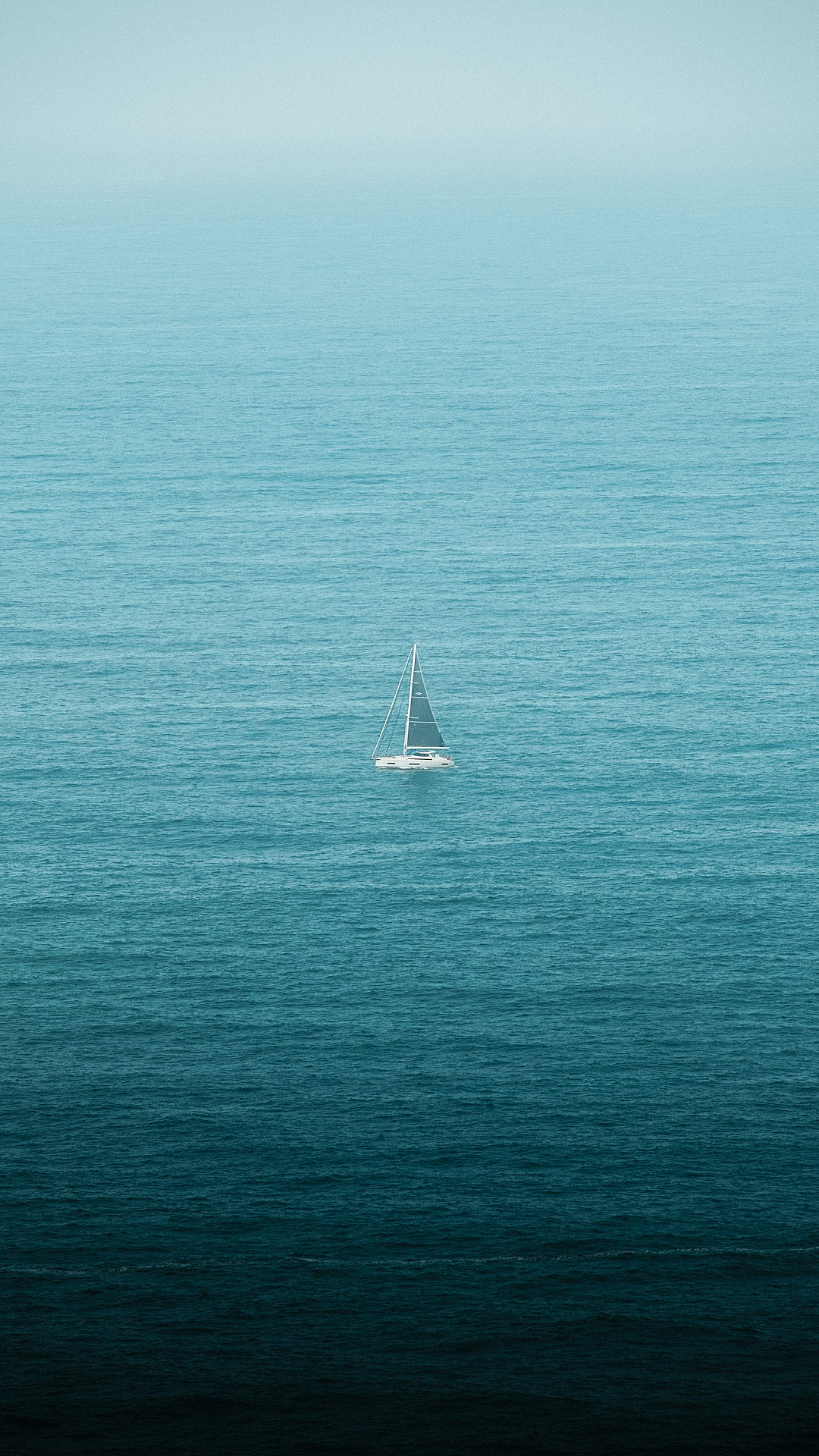 sailboat, ocean, sea, water, alone, solitary, isolated, ship, vessel, boat, marine, nautical, horizon, blue, sky