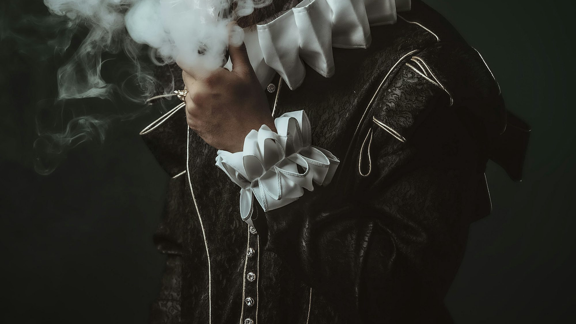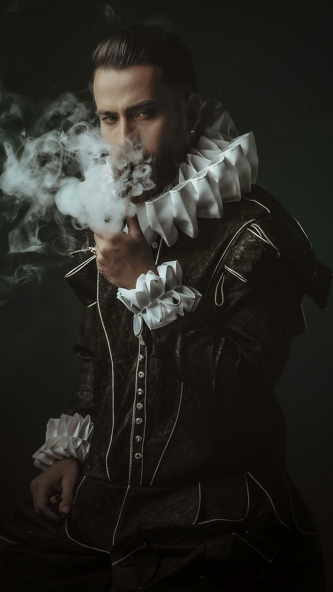 The cigarette smoke adds a layer of texture and visual interest. The overall aesthetic is reminiscent of noir films, with a focus on mood and atmosphere over sharp detail. This image is ideal for those who appreciate dramatic and evocative imagery.