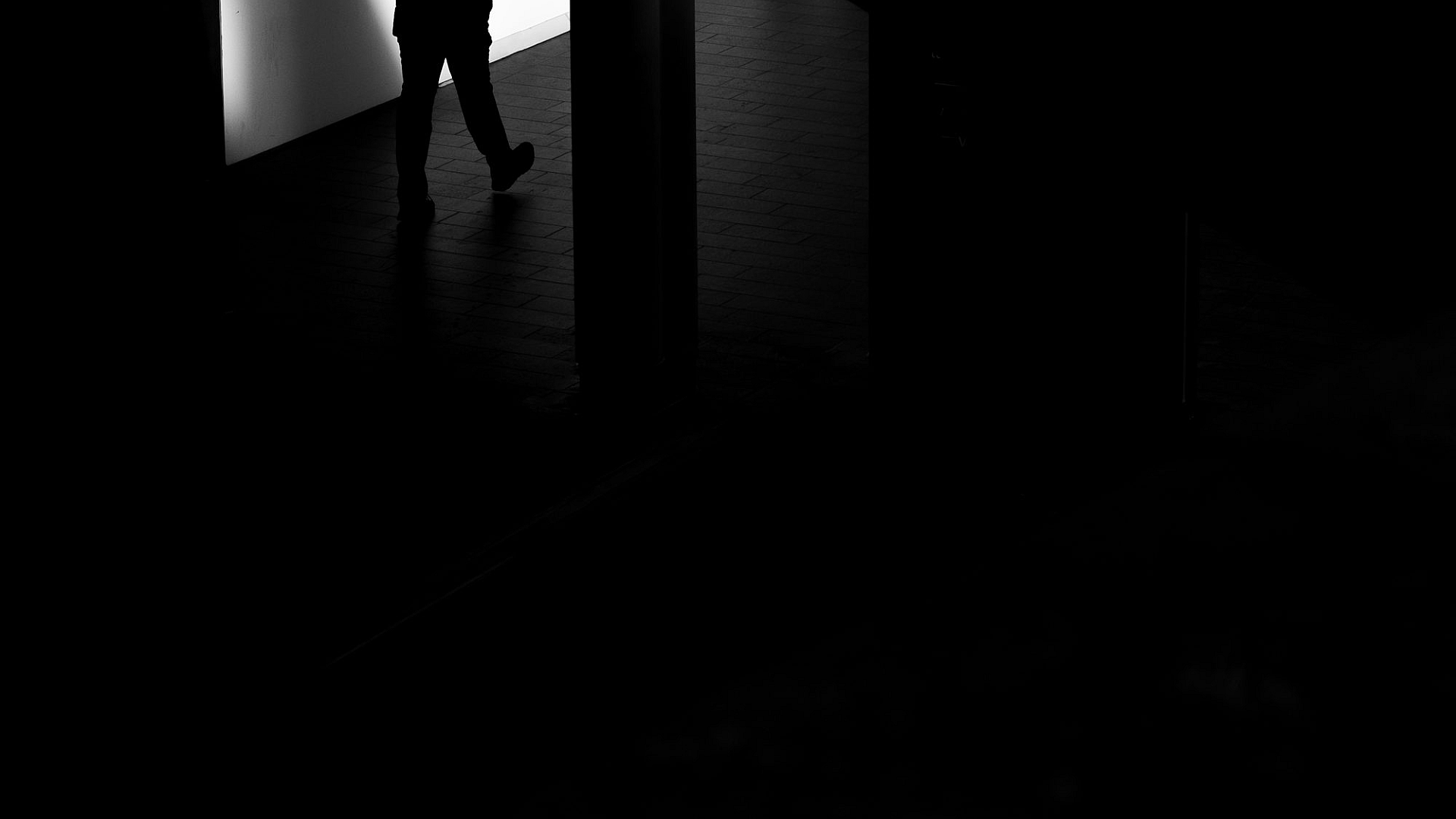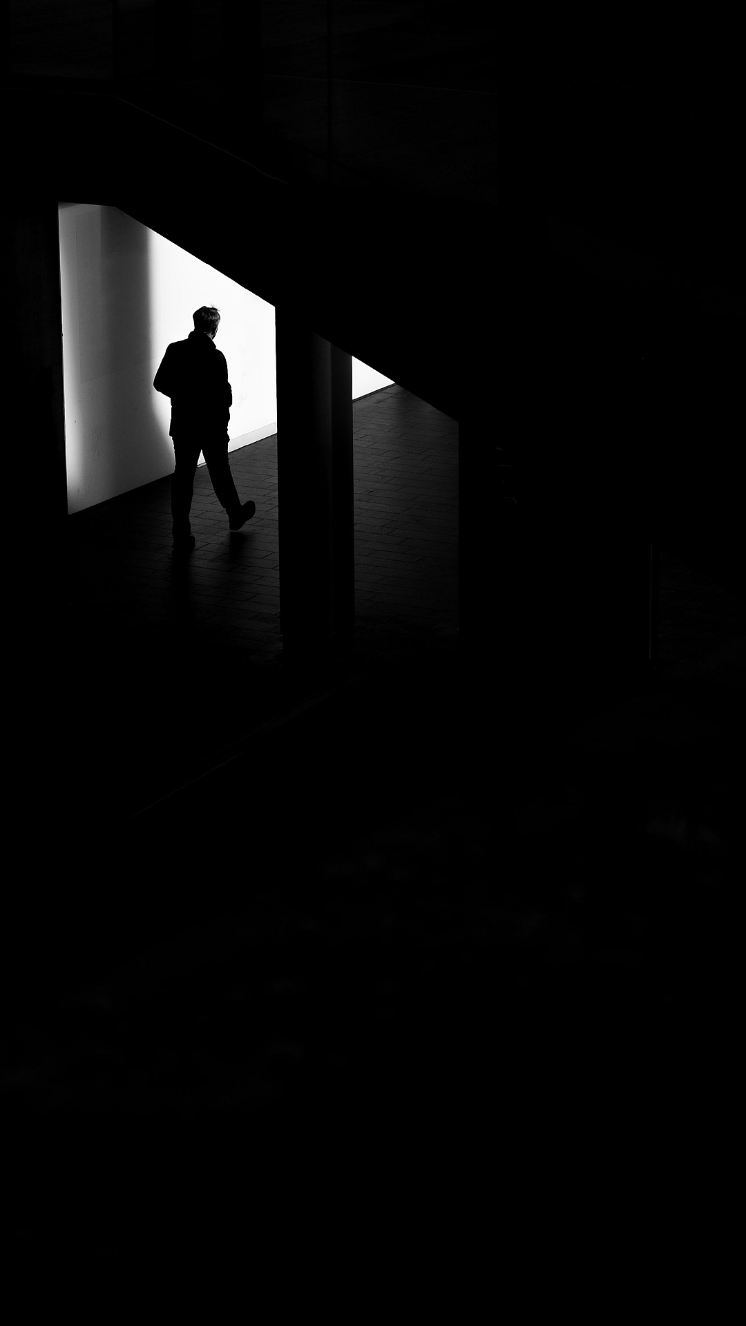 Keywords: man, standing, dark room, wall, shadow, silhouette, mysterious, lone, solitary, isolated, alone, figure, darkness, night, ambiance