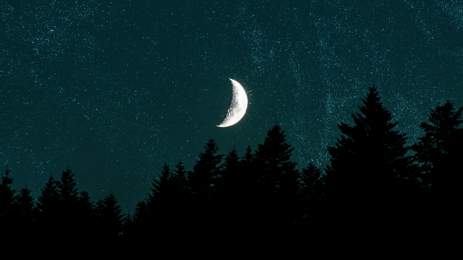 The stars twinkle faintly in the backdrop, adding depth and contrast to the moon‘s radiant glow. The overall effect is one of peaceful serenity, ideal for a calming and relaxing atmosphere. This wallpaper is perfect for desktops, laptops, tablets, and smartphones.