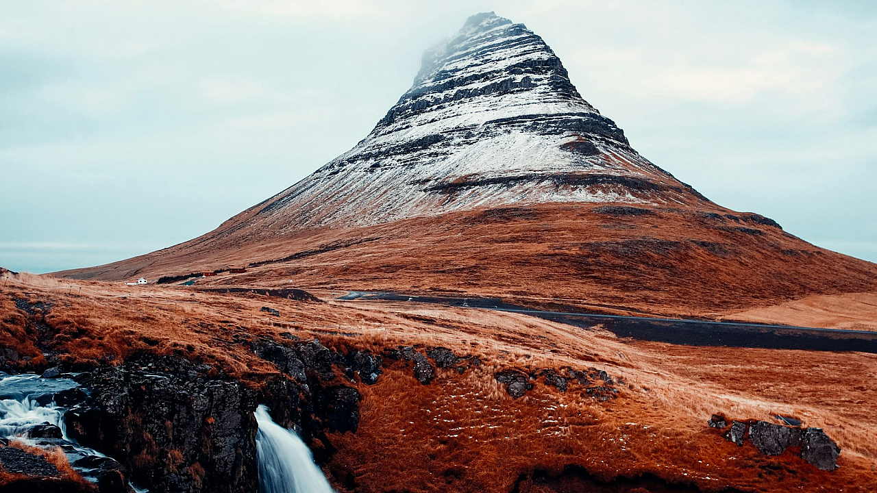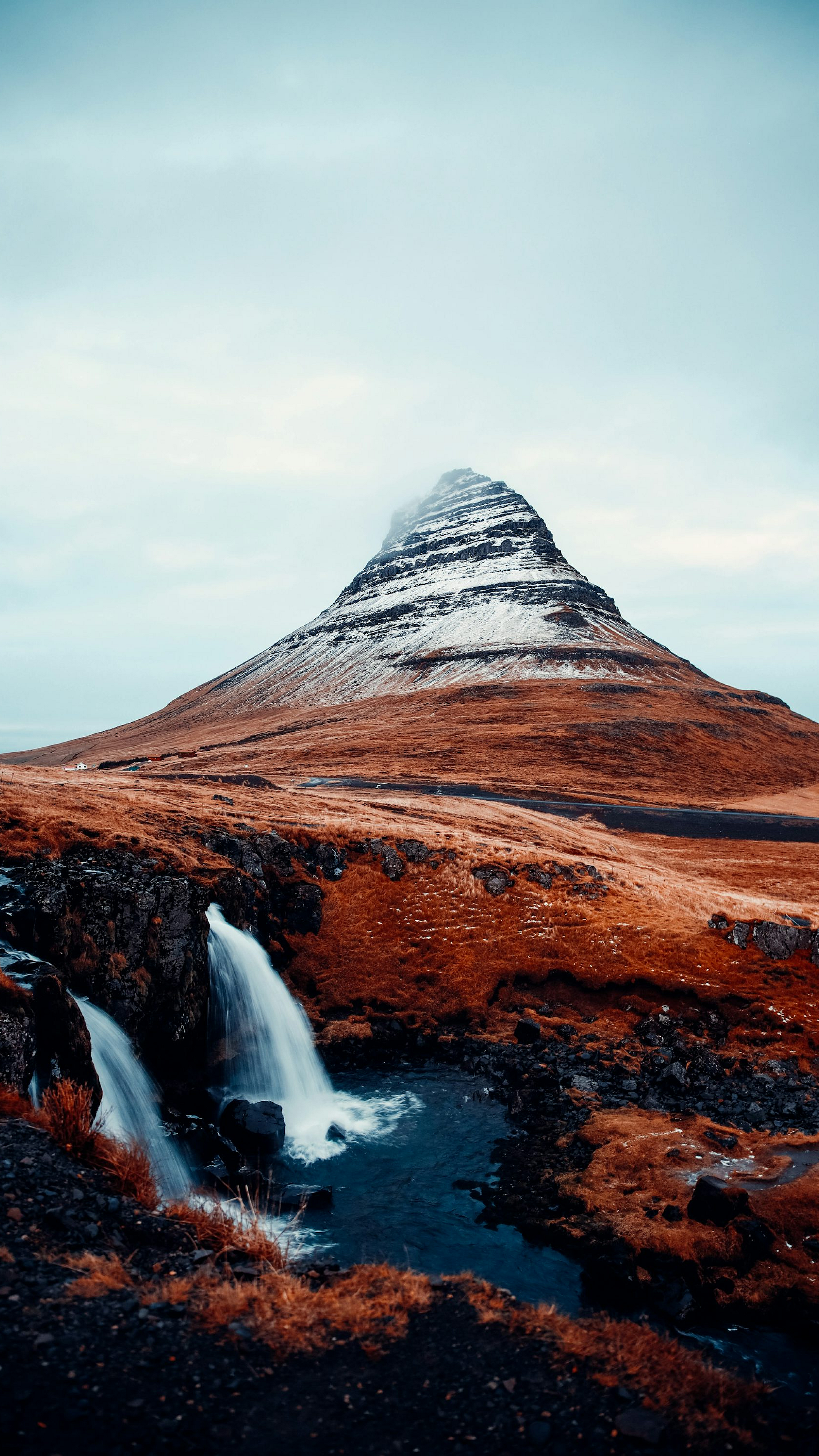 mountain, waterfall, cascade, mountain range, peak, summit, cliff, rocks, nature, landscape, scenery, wilderness, water, flowing water, river, hills, greenery