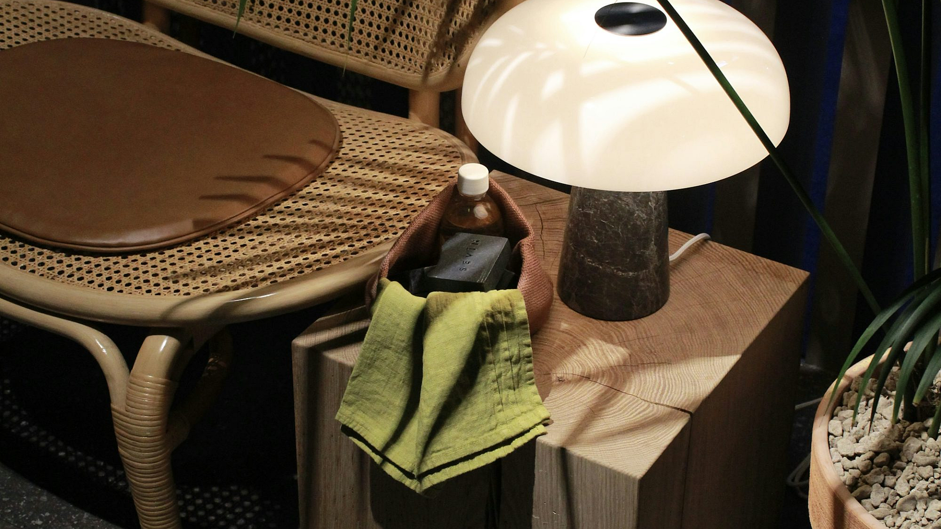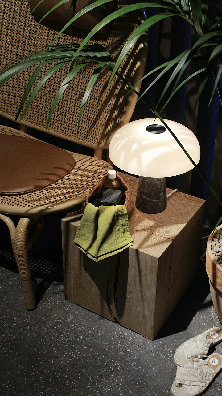 Keywords: shoes, table, lamp, still life, minimalist, simple, interior, home, cozy, comfortable, footwear, lighting, furniture, nightstand, objects