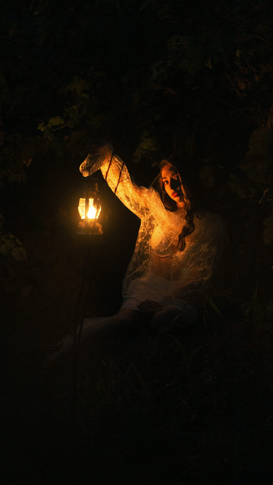 This wallpaper features a captivating image of a person sitting in the dark, holding a lantern. The contrast between the bright light of the lantern and the surrounding darkness creates a visually striking effect. The silhouette of the person adds to the mystery and intrigue of the scene. This wallpaper is perfect for those who appreciate atmospheric imagery and a touch of the uncanny.