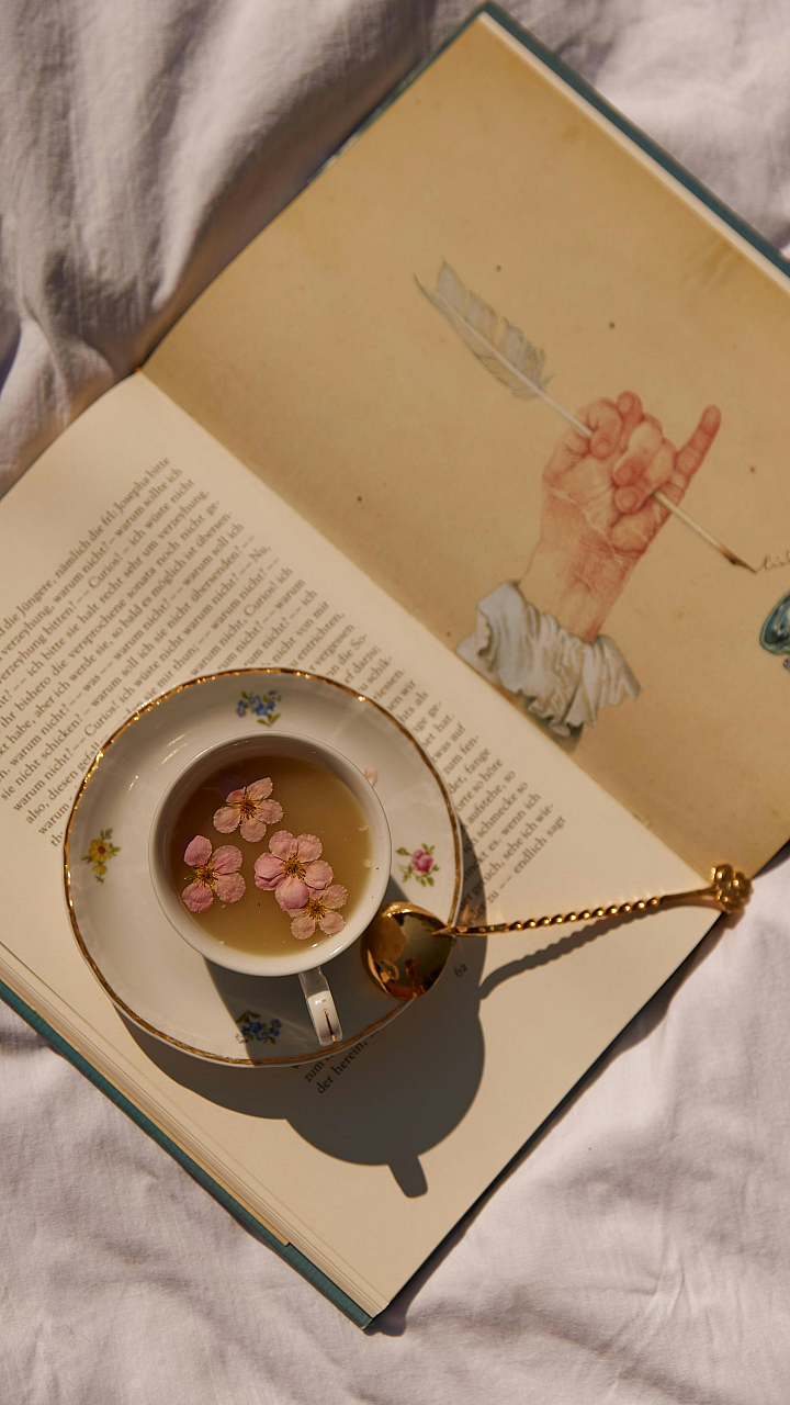 This wallpaper features a delightful image of a tea set elegantly displayed on a plate. The detail is exquisite, showcasing the intricate designs and delicate craftsmanship of the tableware. The overall aesthetic is calming and sophisticated, perfect for creating a relaxing atmosphere in any room.