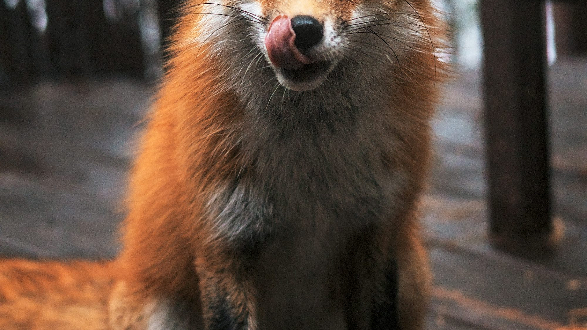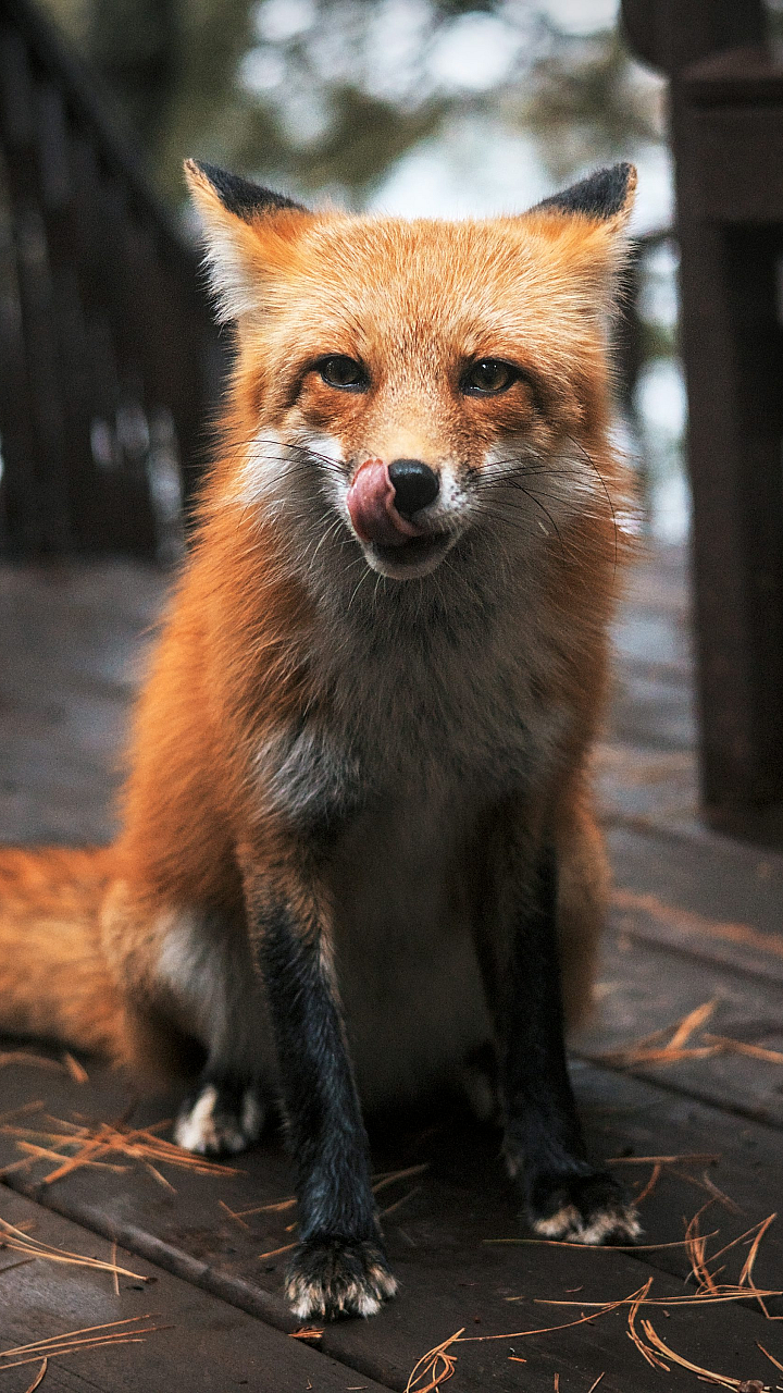 red fox, fox, vulpes vulpes, wooden deck, deck, wood, sitting, animal, wildlife, mammal, canid, nature, outdoor, furry, wild animal