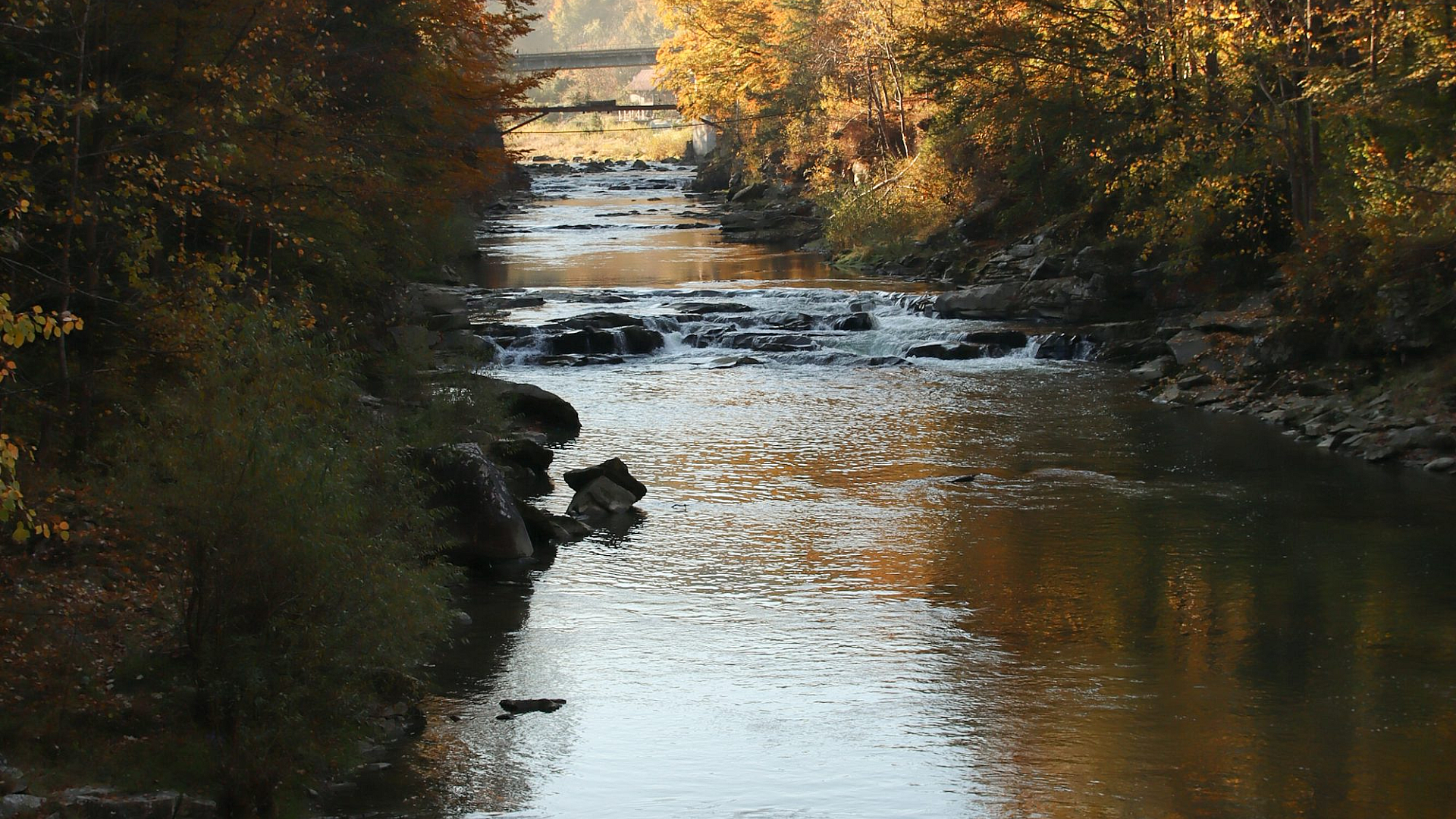 river, forest, trees, woodland, woods, water, stream, creek, nature, landscape, scenery, greenery, lush, vegetation, flowing