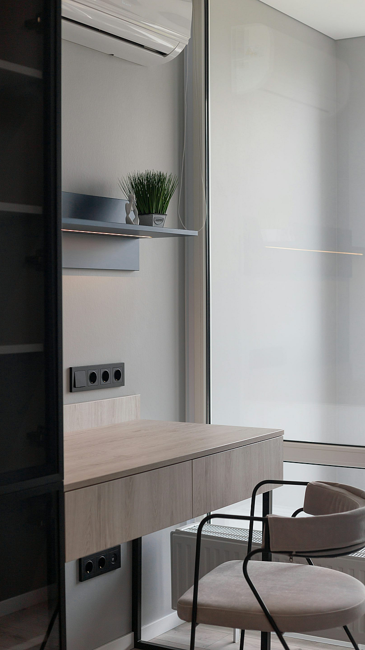 Keywords: room, desk, chair, study, office, workspace, home office, simple, minimalist, interior, furniture, single, solitary, calm, peaceful, serene