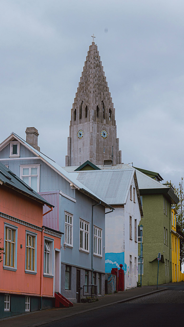 Keywords: row of houses, houses, homes, buildings, church, steeple, church steeple, architecture, village, town, cityscape, landscape, scenery, background, pastoral