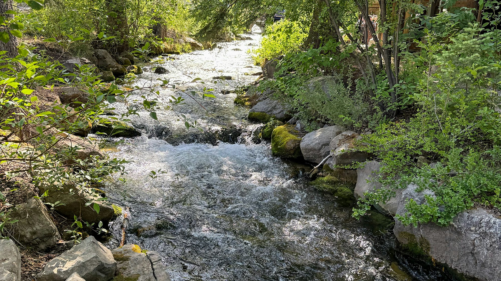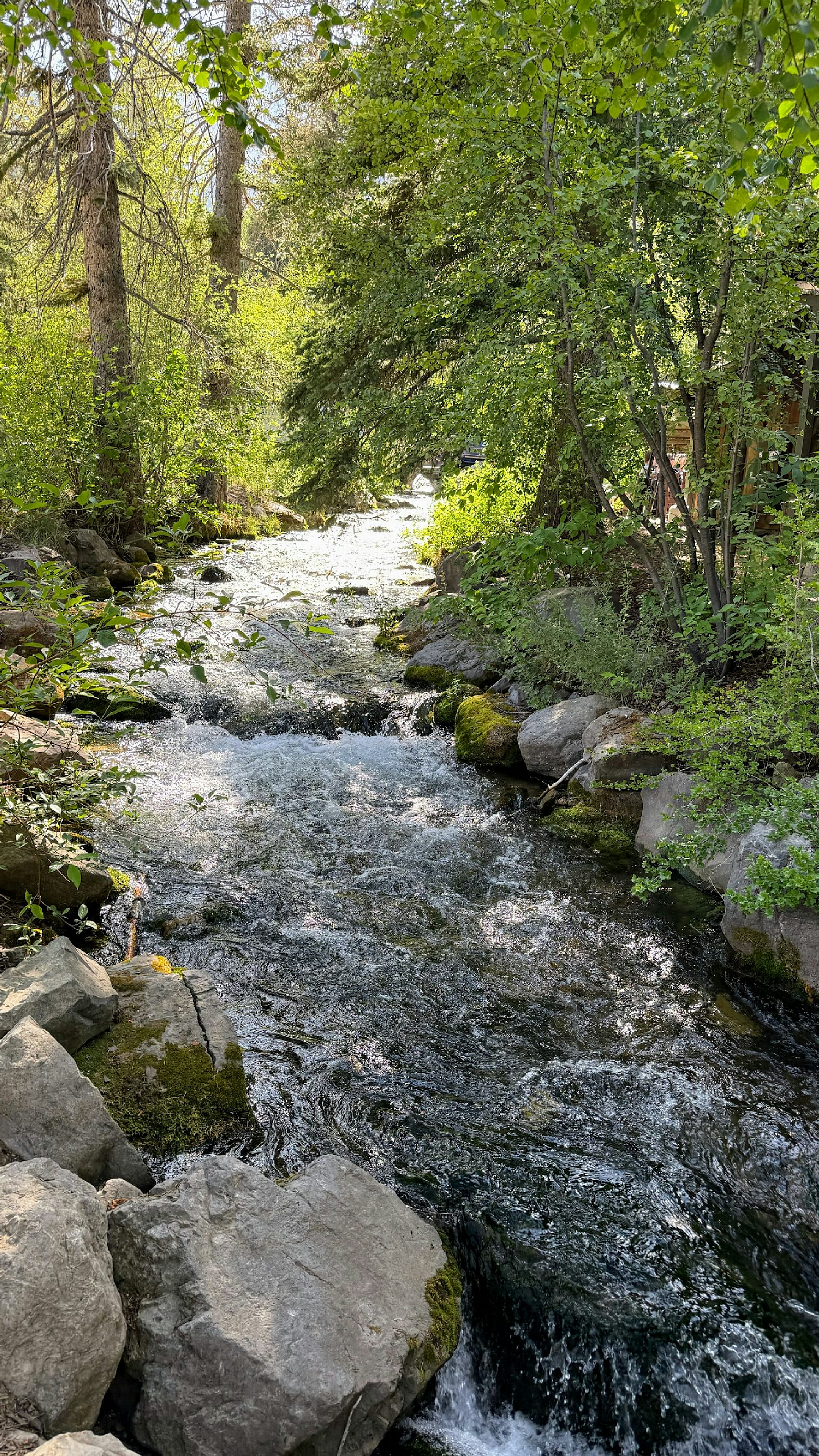 creek, stream, brook, forest, woods, lush, green, foliage, leaves, water, flowing, rushing, nature, landscape, scenery