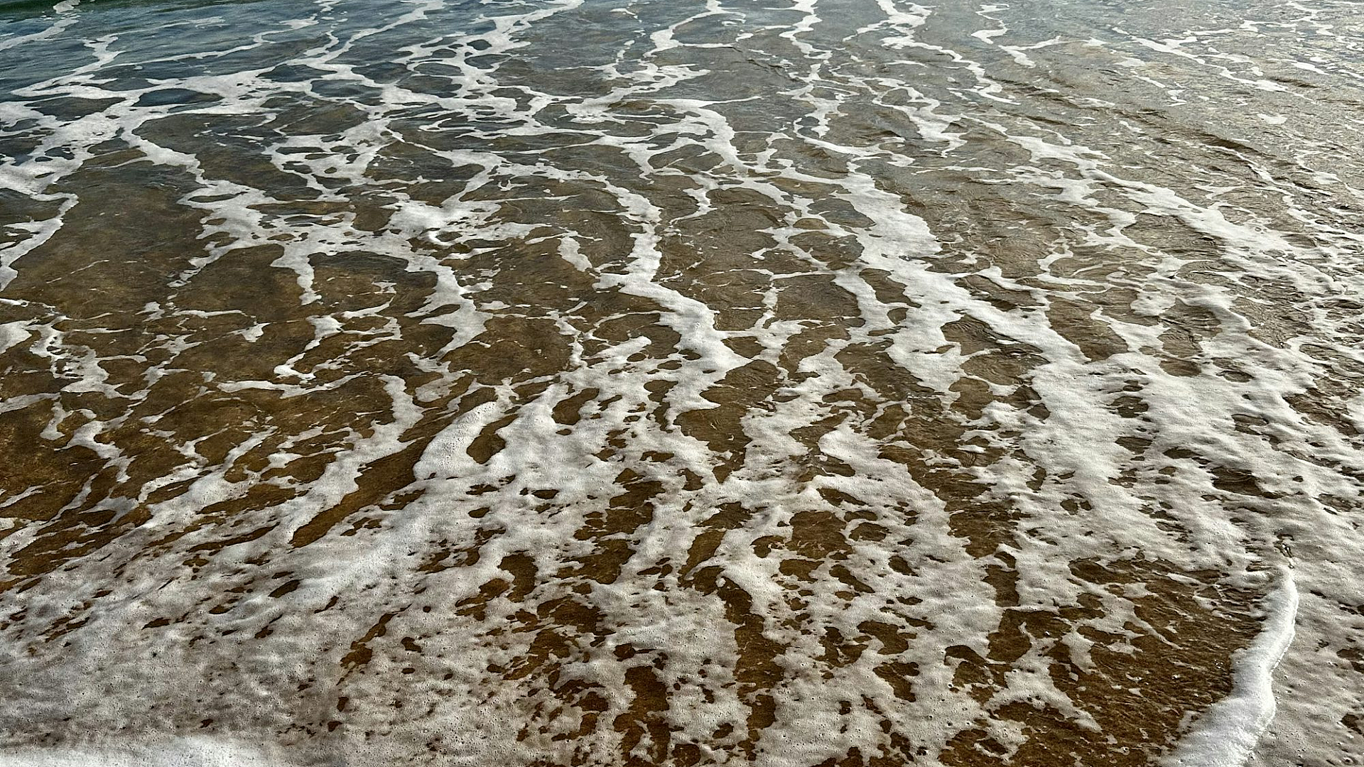 a sandy beach with waves coming in and out of the water