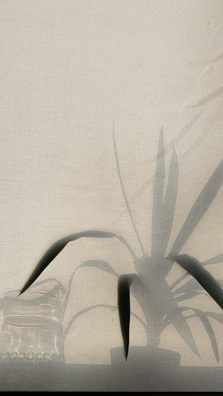 Keywords: shadow, plant shadow, white sheet, minimalist, simple, botanical, nature, light and shadow, photography, texture, abstract, monochrome, white background, plant silhouette, leaf shadow, foliage shadow