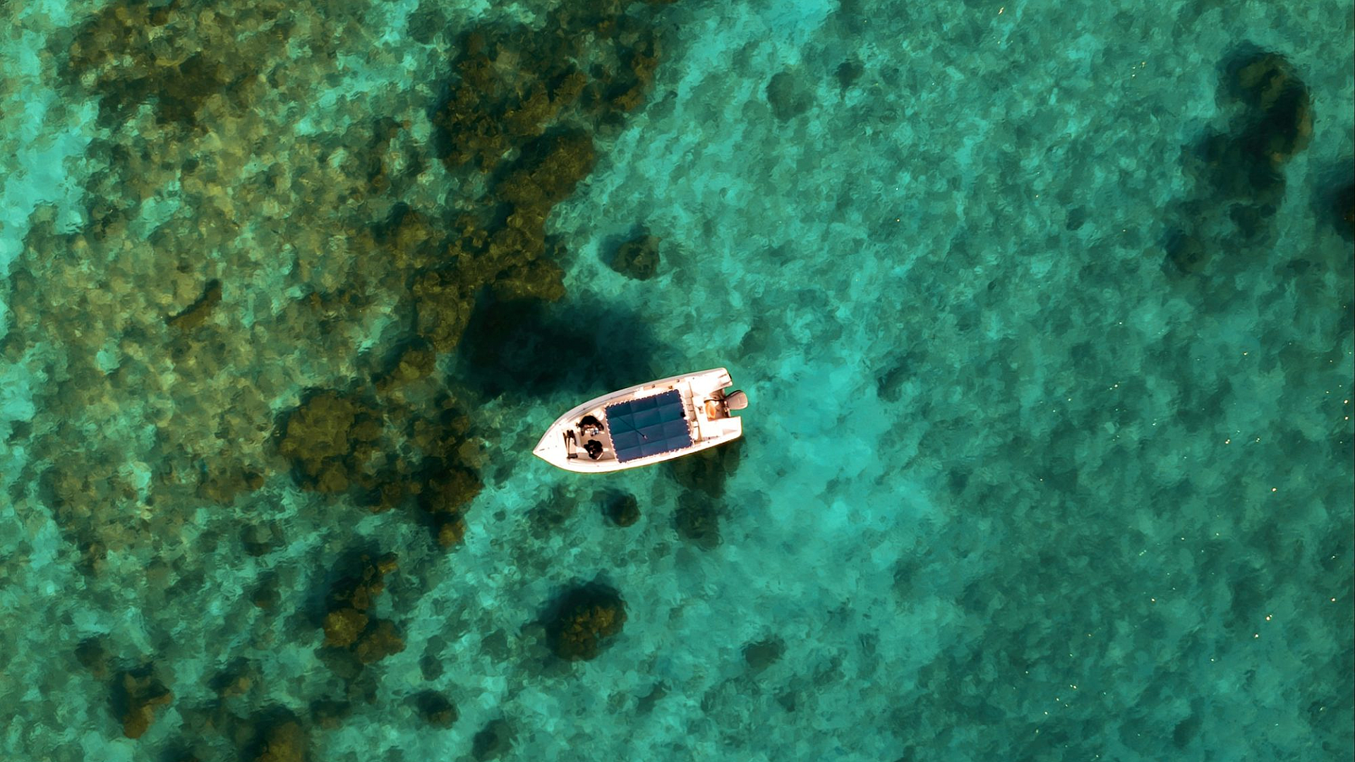 This wallpaper features a captivating image of a small boat gently floating on the surface of a body of water. The scene evokes a sense of tranquility and serenity. The calm water reflects the sky, creating a mirror-like effect. The overall mood is one of peace and quietude. The image is perfect for those seeking a relaxing and visually appealing desktop background.
