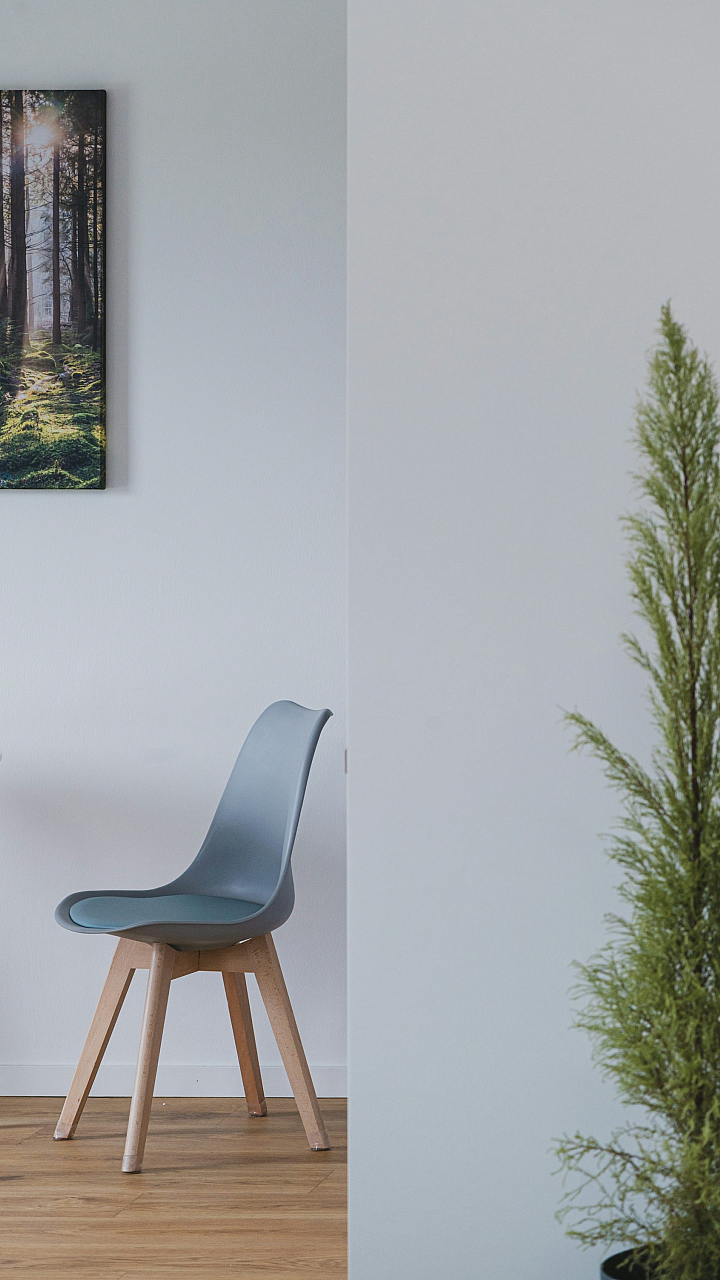 This wallpaper features a cozy and elegant scene of a table and chairs arranged in a room. A captivating painting hangs on the wall, adding a touch of artistic flair to the overall composition. The wallpaper evokes a sense of calm and tranquility, perfect for creating a relaxing atmosphere in any space.