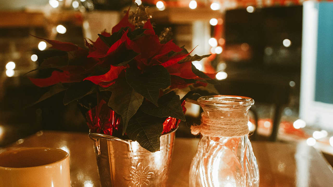 The red color of the rose is vibrant and eye-catching, contrasting beautifully against the table and vase. The overall composition is simple yet effective, making it a perfect choice for those seeking a minimalist yet aesthetically pleasing wallpaper. The image celebrates the nature of the flower, capturing its delicate elegance.