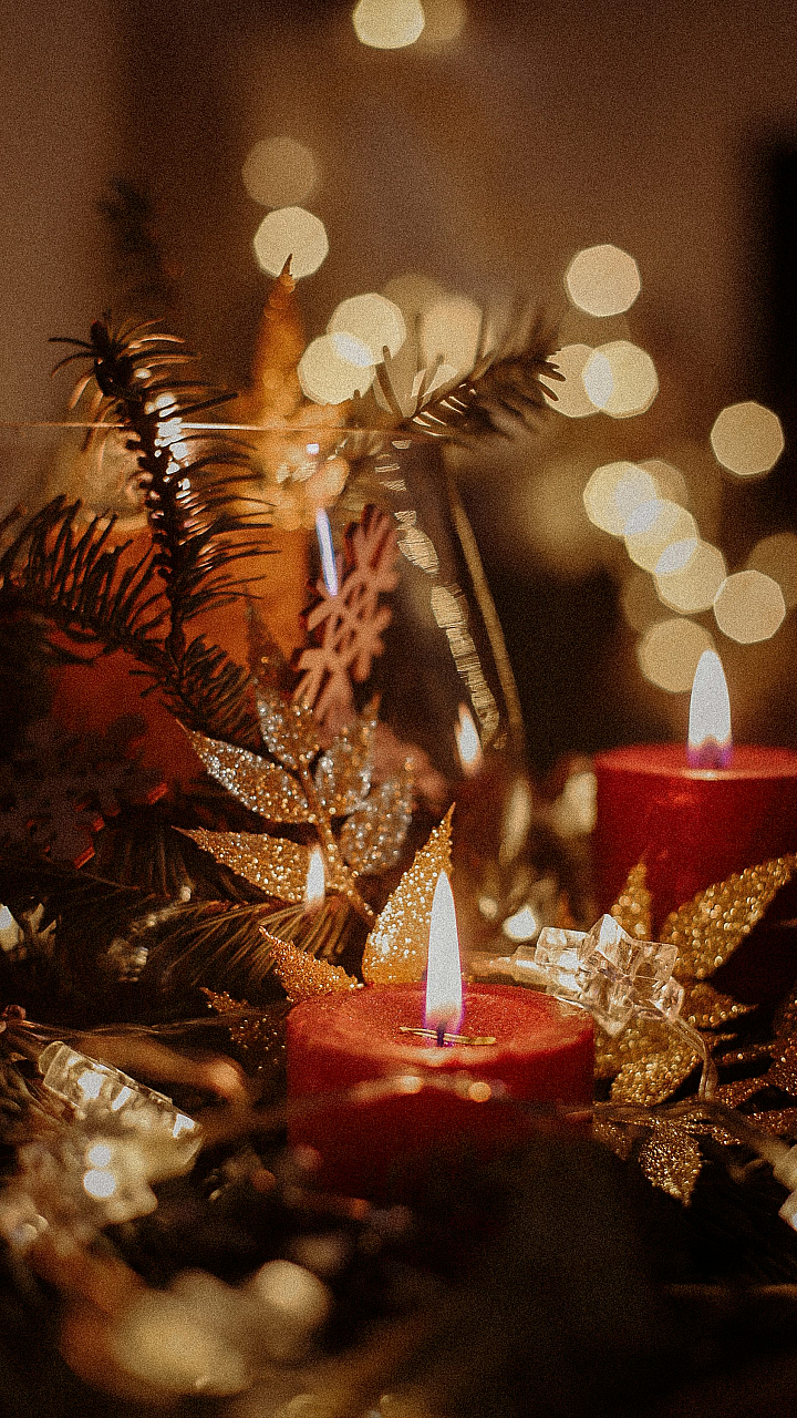 Christmas, decorations, candles, table, holiday, festive, winter, cozy, warm, ambiance, Christmas table, holiday decorations, candlelight, Christmas setting, winter wonderland