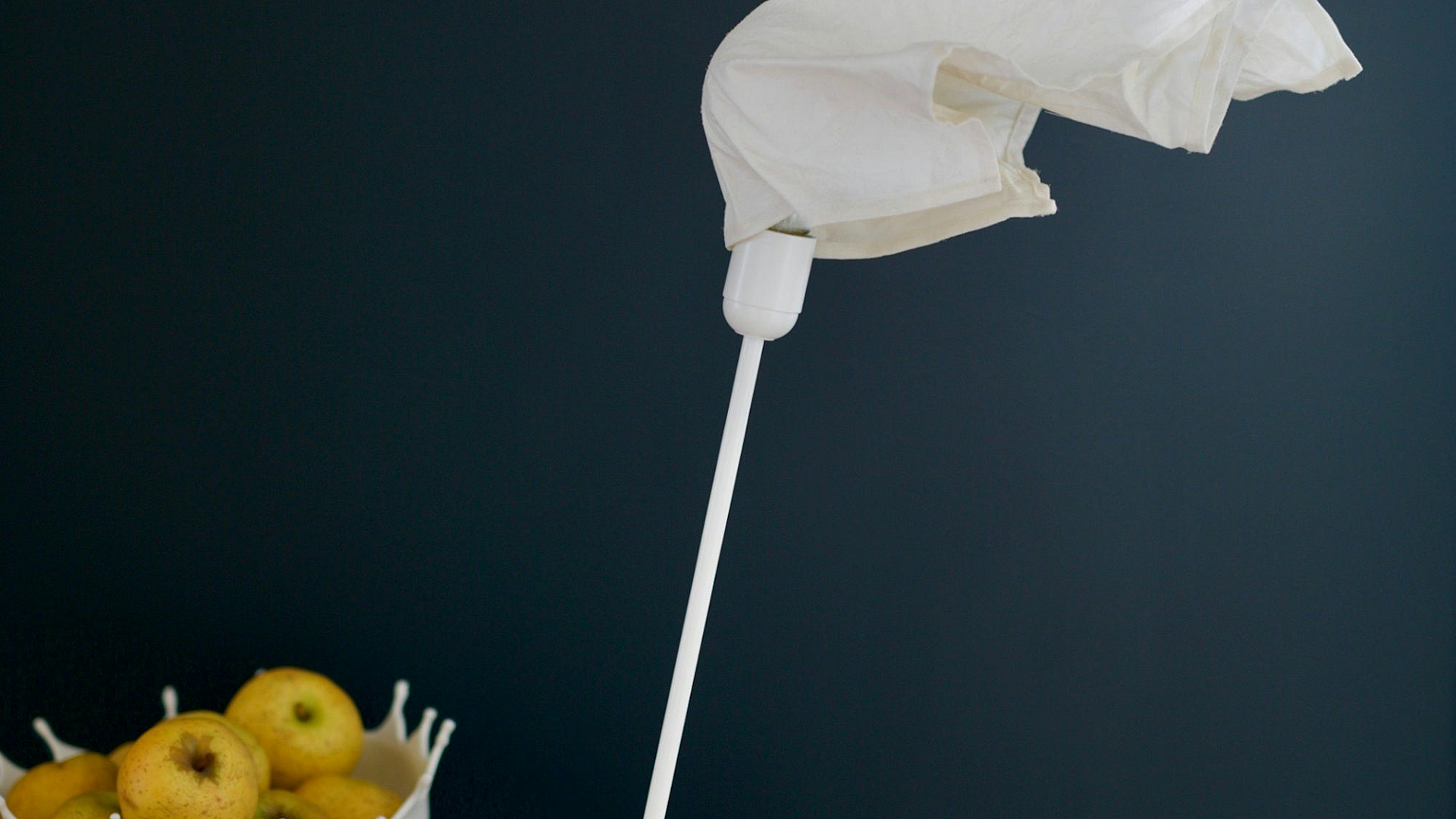 This wallpaper features a still life composition of a table setting. A charming bowl overflowing with fruit sits prominently, possibly suggesting a refreshing picnic scene. An umbrella is also present, hinting at an outdoor setting, perhaps providing shade on a sunny day. The overall mood is vibrant and colorful, evoking feelings of summer and health.